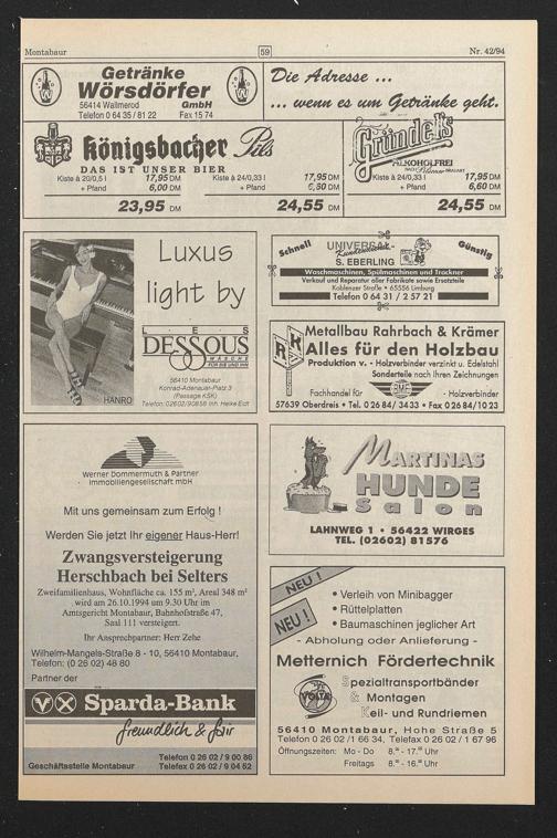 56410 Montabaur, Hohe Straße 5 Telefon 0 26 02 /1 66 34, Telefax 0 26 02 / 1 67 96 Öffnungszeiten: Mo - Do 8.“ -17.°° Uhr Freitags 8.“ -16.“ Uhr