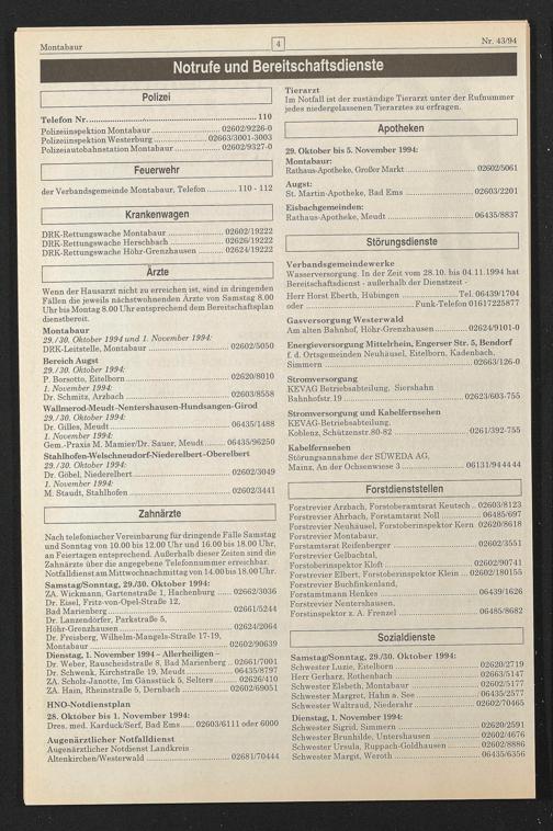 der Verbandsgemeinde Montabaur, Telefon.110 - 112