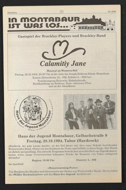 Haus der Jugend Montabaur, Gelbachstraße 9 Freitag, 28.10.1994, Tabor (Hardrock)