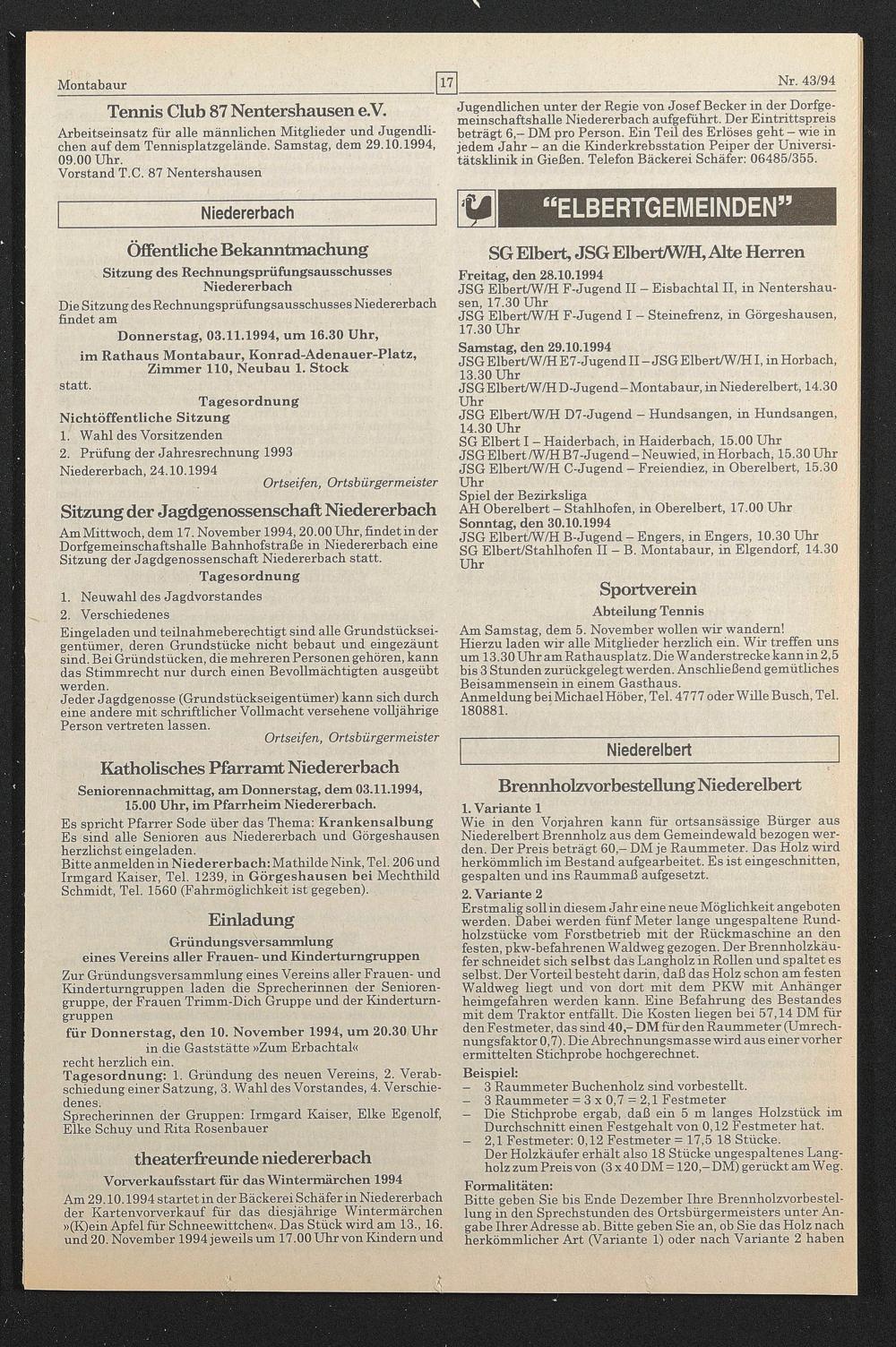 AH Oberelbert - Stahlhofen, in Oberelbert, 17.00 Uhr Sonntag, den 30.10.1994