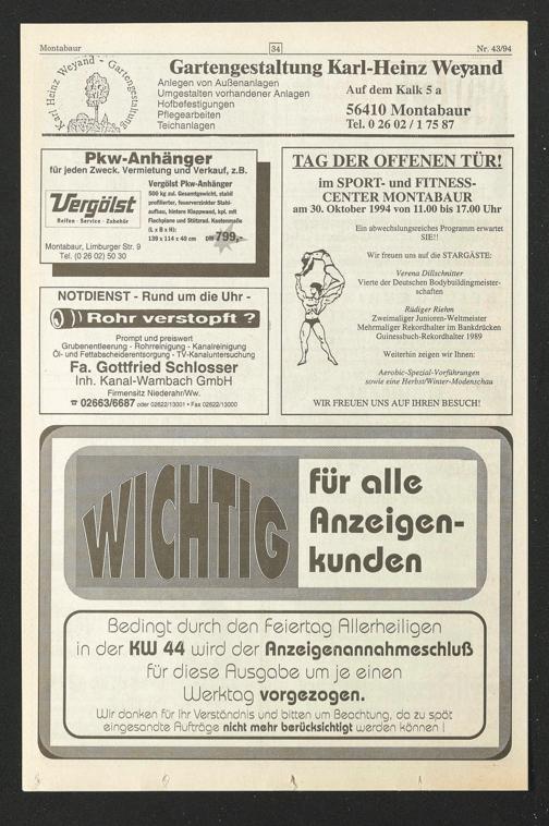 in der KUU 44 Luird der Anzeigenannahmeschluß