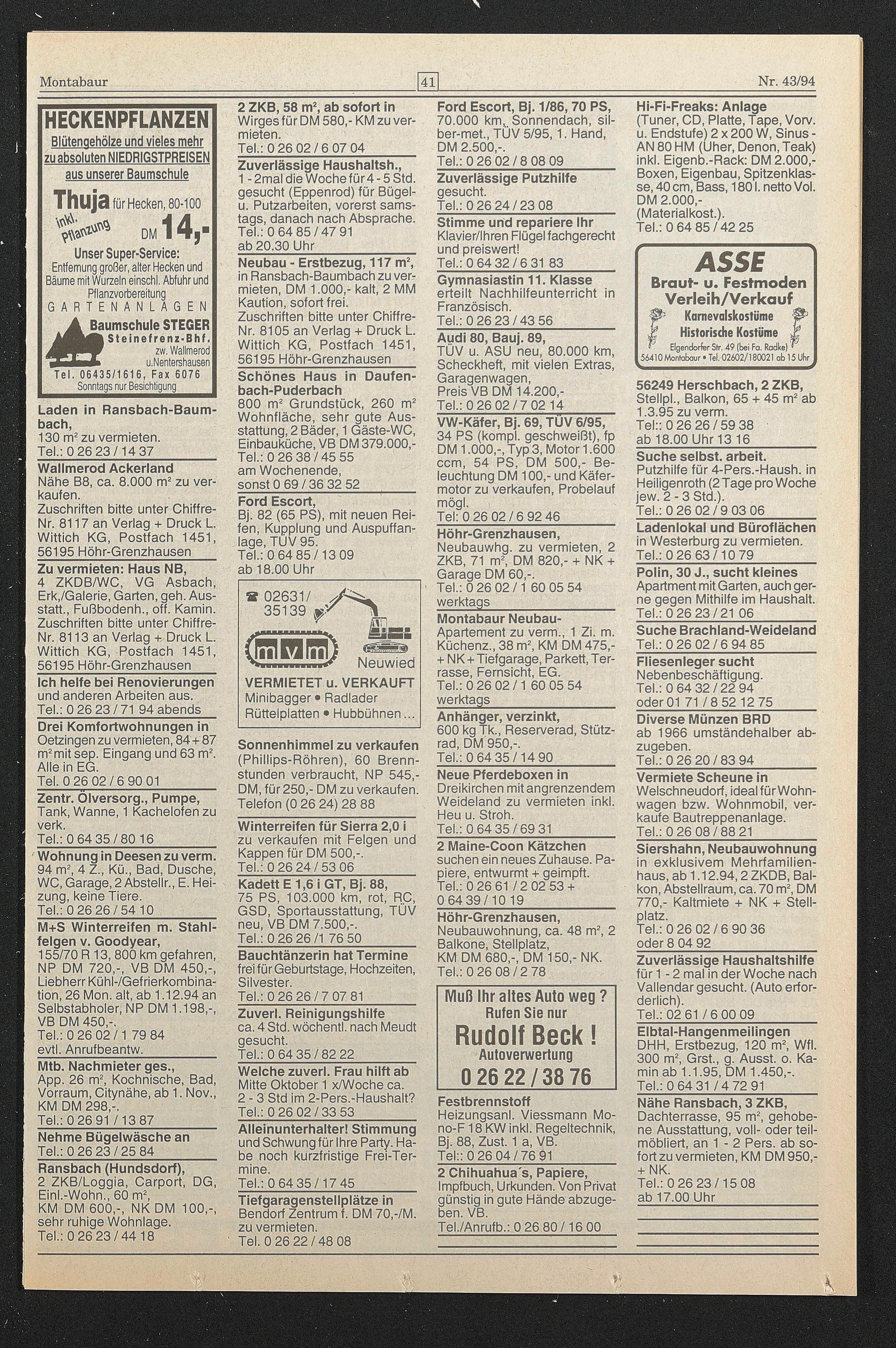 KM DM 680,-, DM 150,- NK. Tel.: 0 26 08/2 78