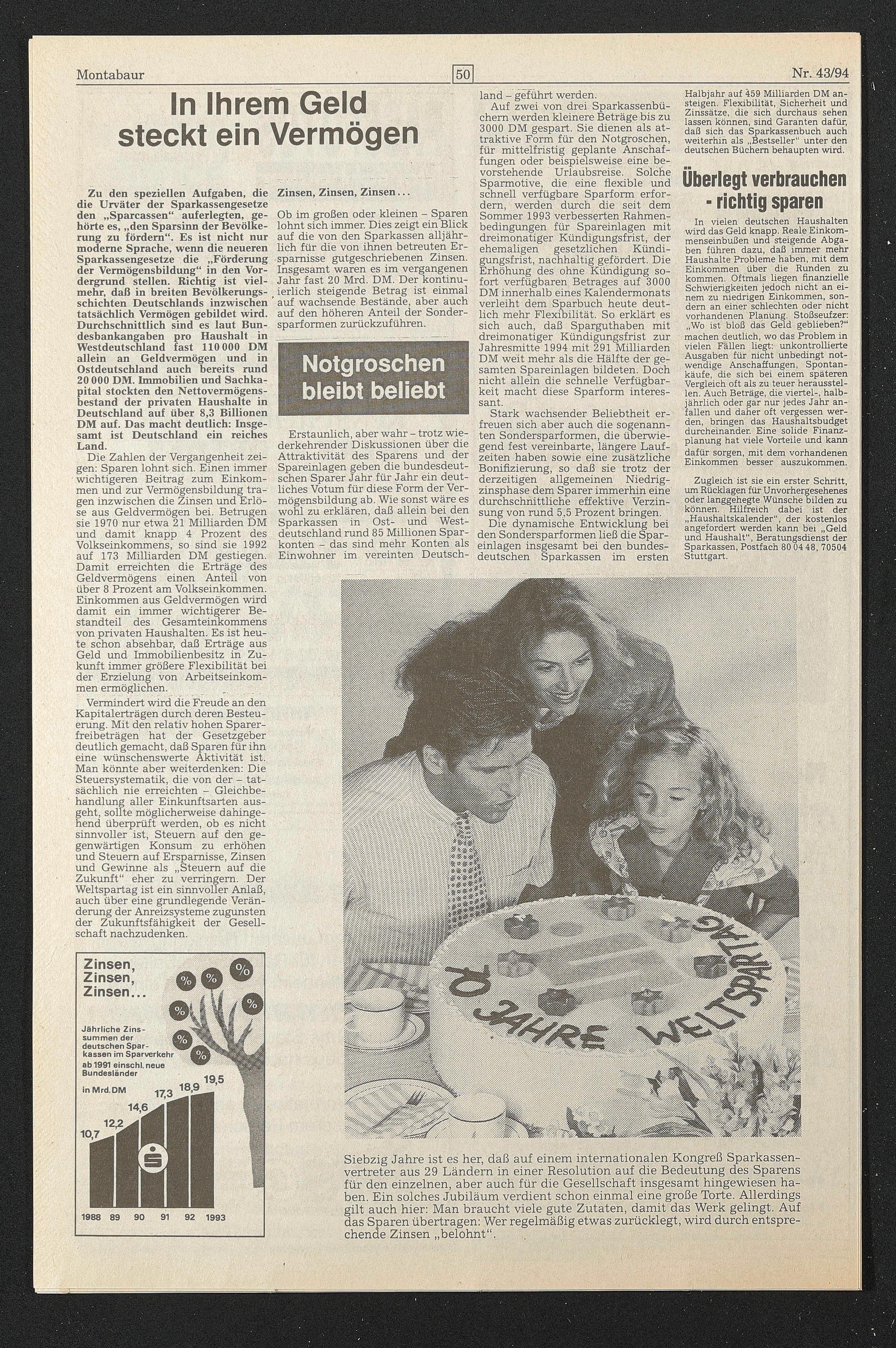 Siebzig Jahre ist es her, daß auf einem internationalen Kongreß Sparkassenvertreter aus 29 Ländern in einer Resolution auf die Bedeutung des Sparens für den einzelnen, aber auch für die Gesellschaft insgesamt hingewiesen haben. Ein solches Jubiläum verdient schon einmal eine große Torte. Allerdings gilt auch hier: Man braucht viele gute Zutaten, damit das Werk gelingt. Auf das Sparen übertragen: Wer regelmäßig etwas zurücklegt, wird durch entsprechende Zinsen „belohnt“.