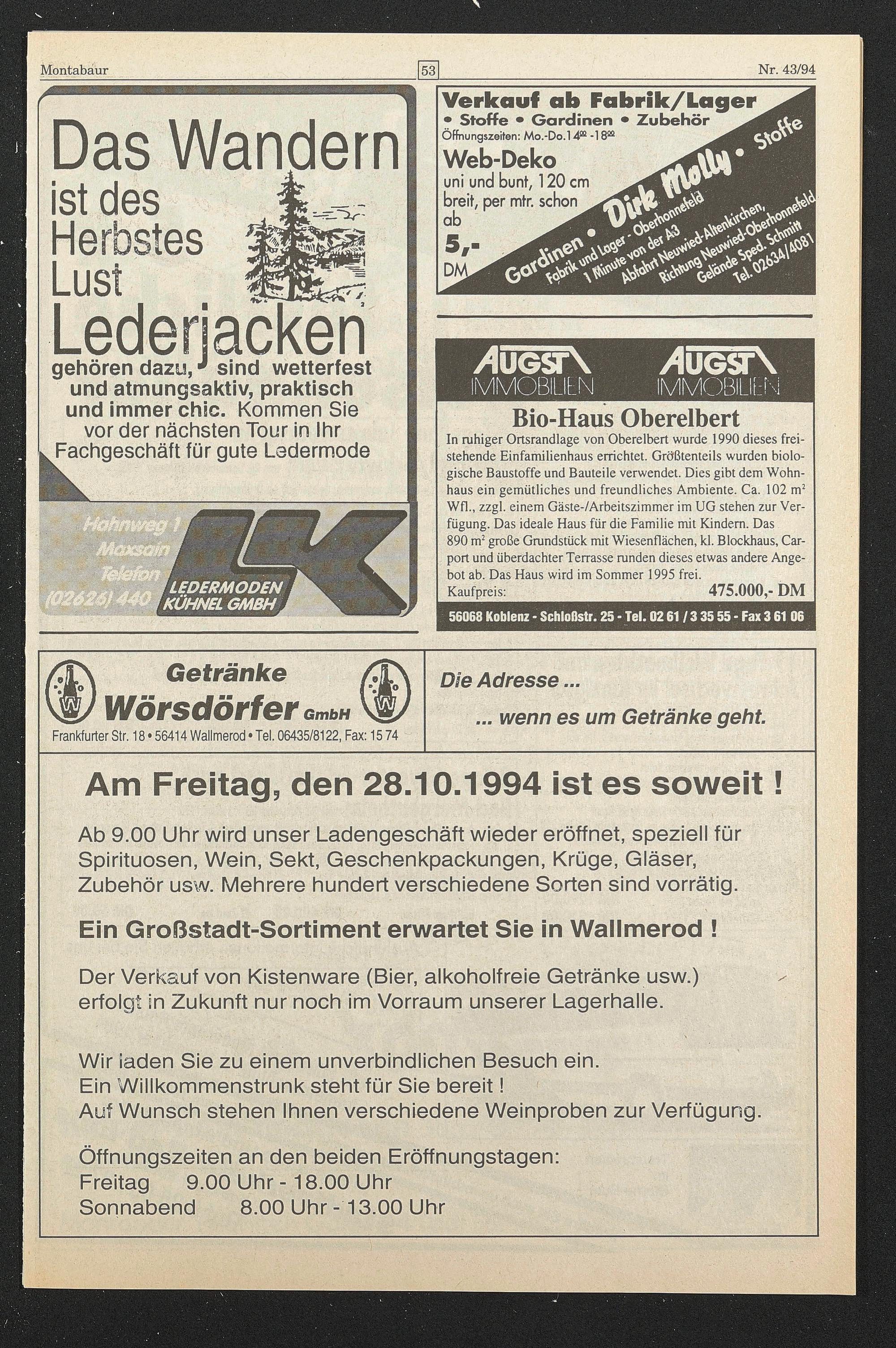 Frankfurter Sir. 18 • 56414 Wallmerod • Tel. 06435/8122, Fax: 15 74
