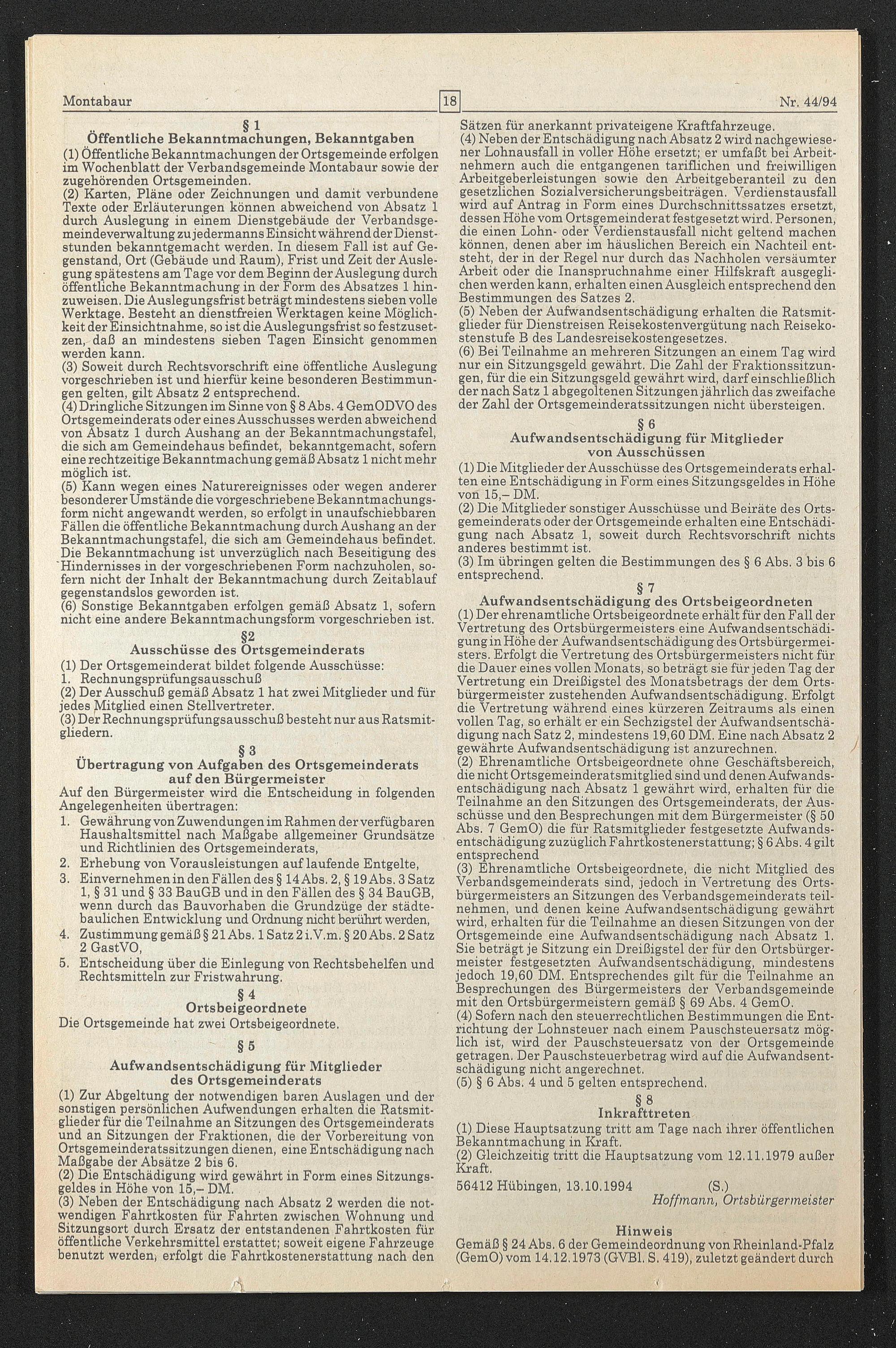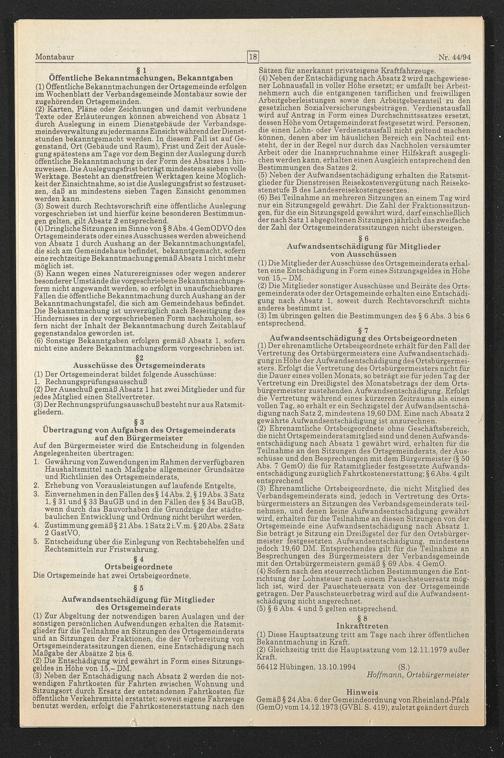 Gemäß § 24 Abs. 6 der Gemeindeordnung von Rheinland-Pfalz (GemO) vom 14,12.1973 (GVB1. S. 419), zuletzt geändert durch