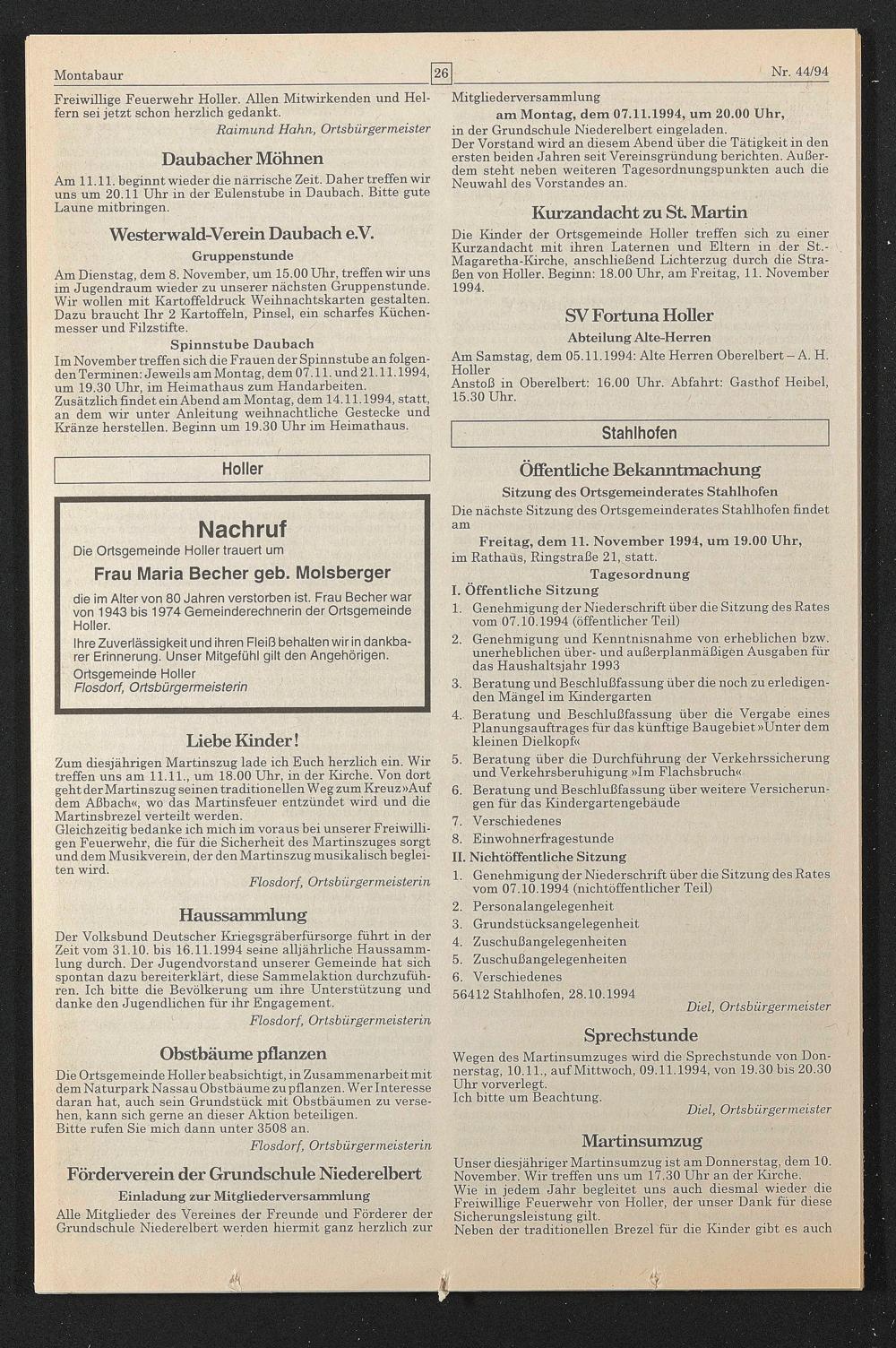 am Montag, dem 07.11.1994, um 20.00 Uhr, in der Grundschule Niederelbert eingeladen.