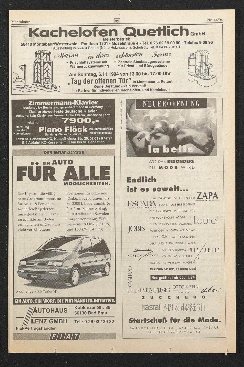 Am Sonntag, 6.11.1994 von 13.00 bis 17.00 Uhr „Tag der offenen Tür” in Montabaur u. Rettert