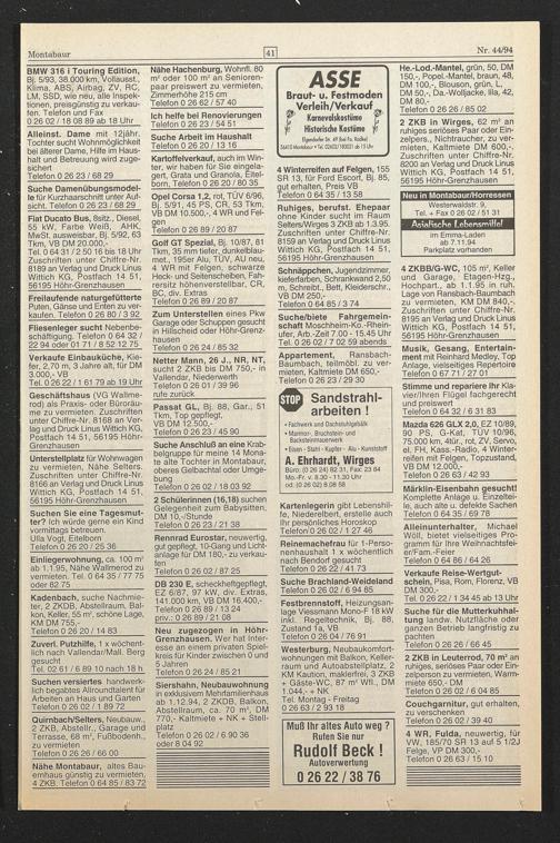 VB DM 12.500,- Telefon 0 26 23 / 45 90