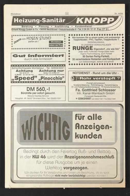 Schloßlichtspiele Montabaur - Tel. 02602/2221