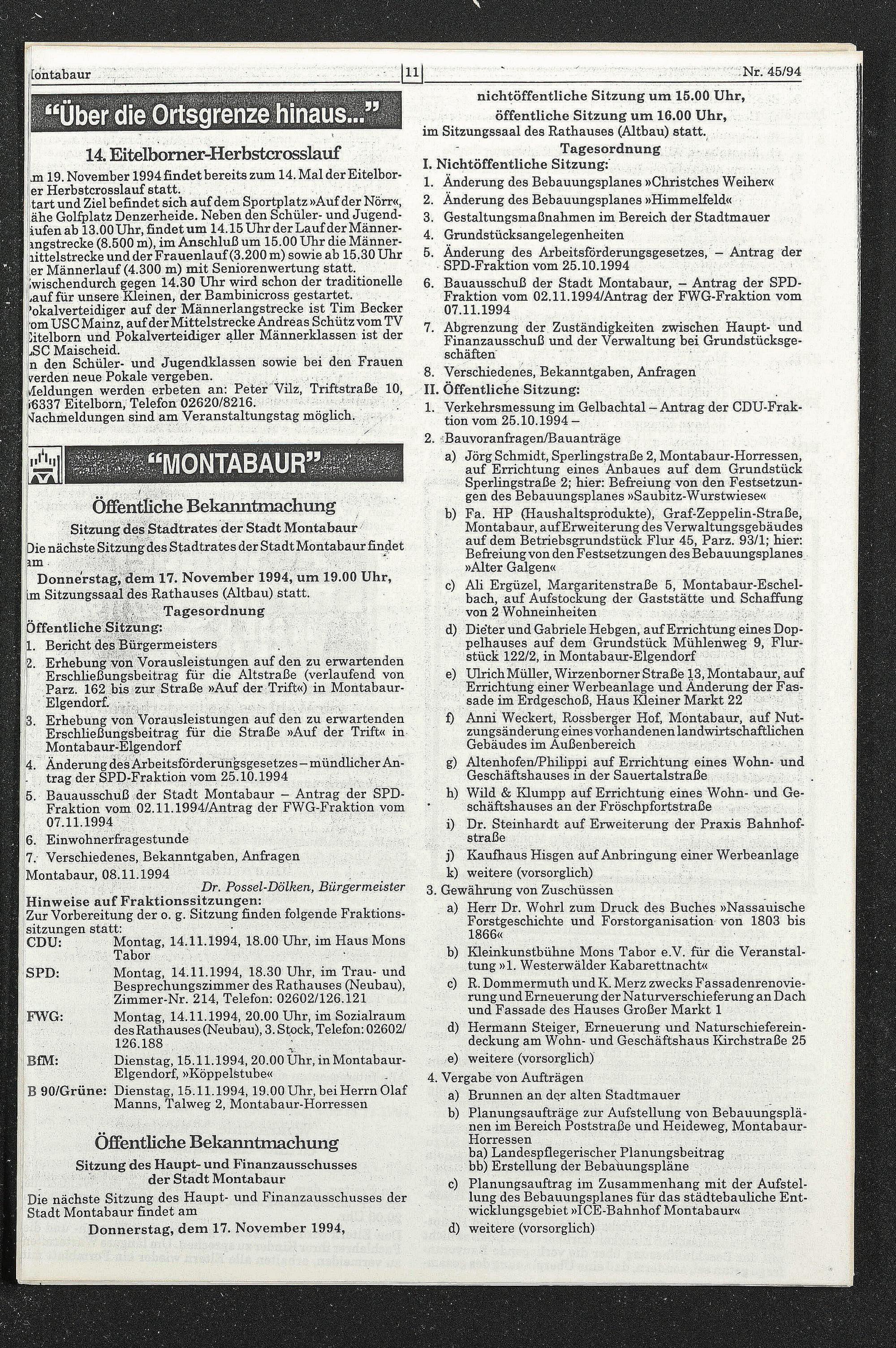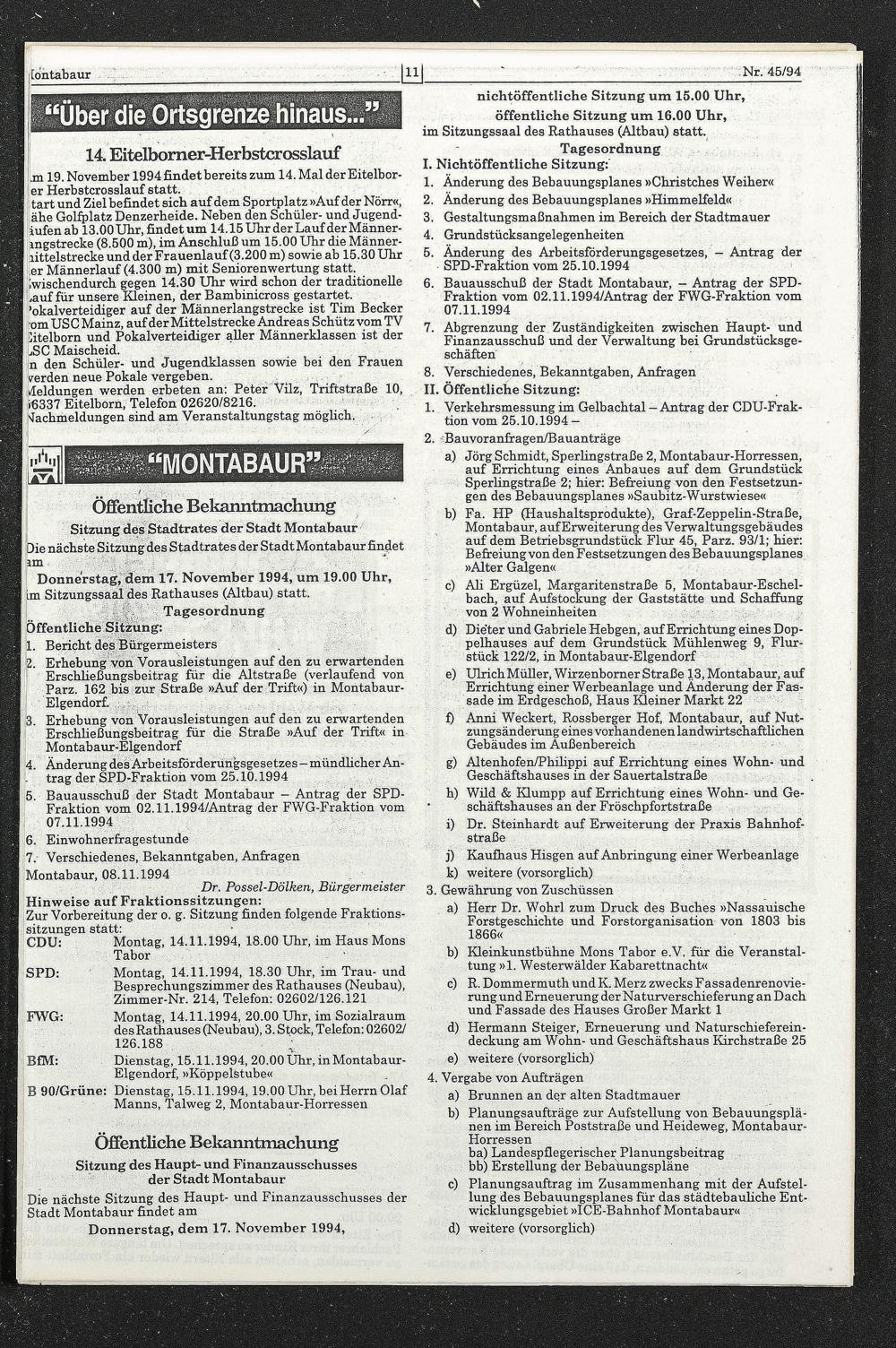 7. Verschiedenes, Bekanntgaben, Anfragen Montabaur, 08.11.1994