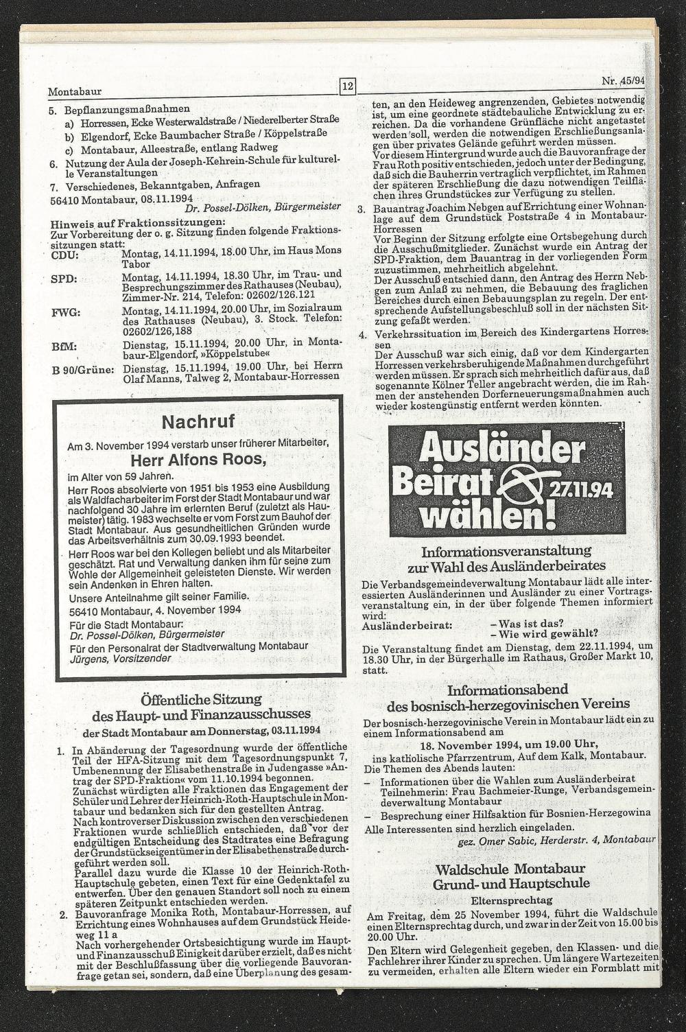 der Stadt Montabaur am Donnerstag, 03.11.1994 .