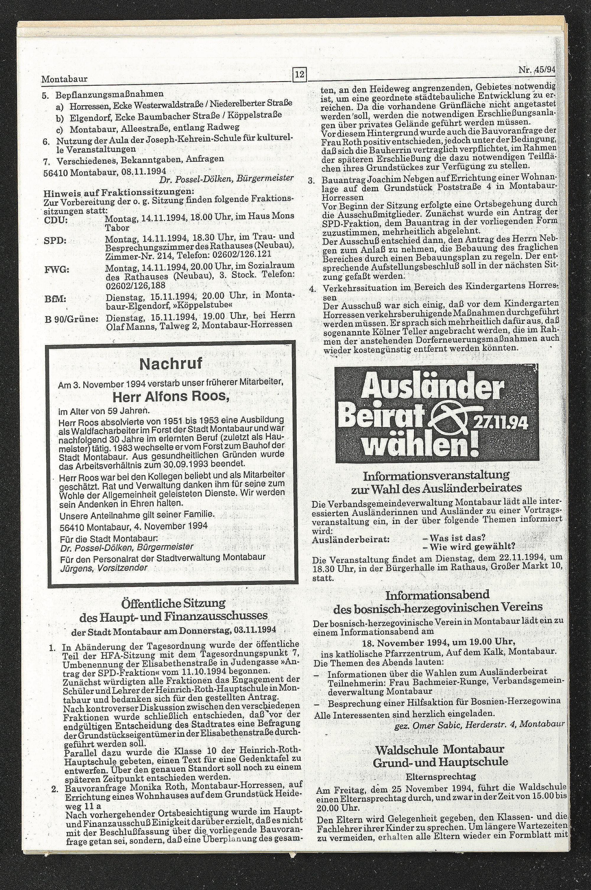 SPD: Montag, 14.11.1994, 18.30 Uhr, im Trau- und