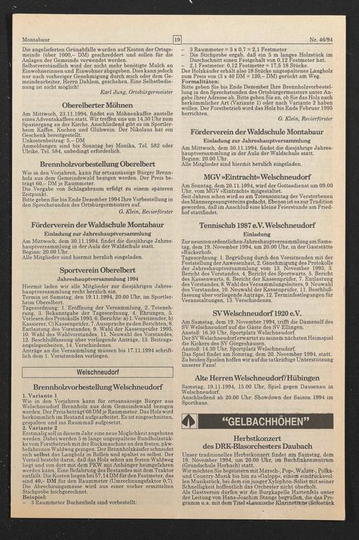 Bitte geben Sie bis Ende Dezember 1994 Ihre Vorbestellung in den Sprechstunden des Örtsbürgermeisters auf.