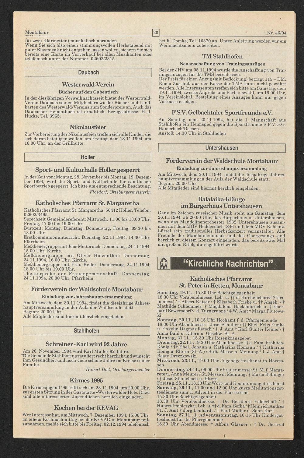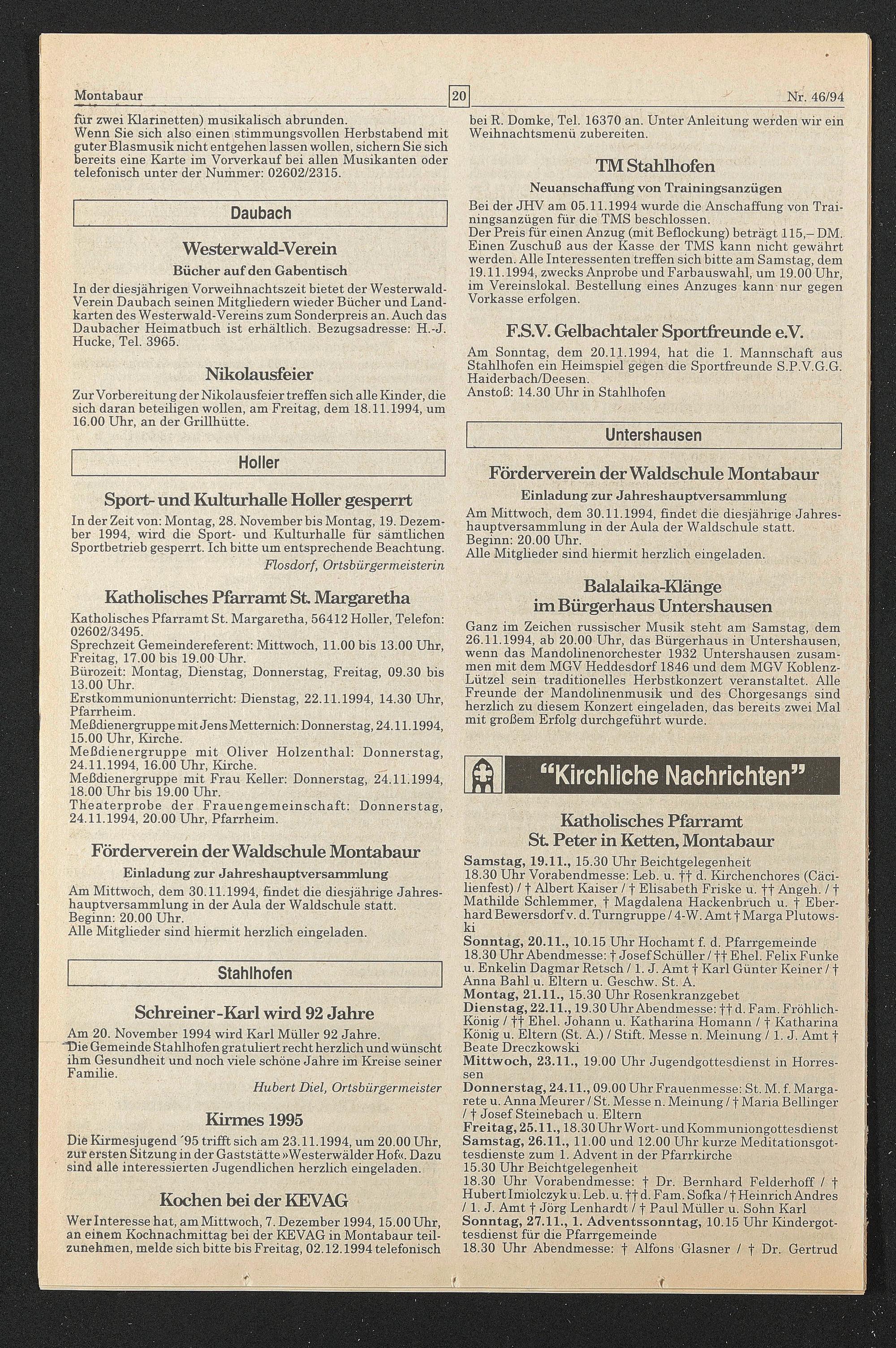 24.11.1994, 20.00 Uhr, Pfarrheim.