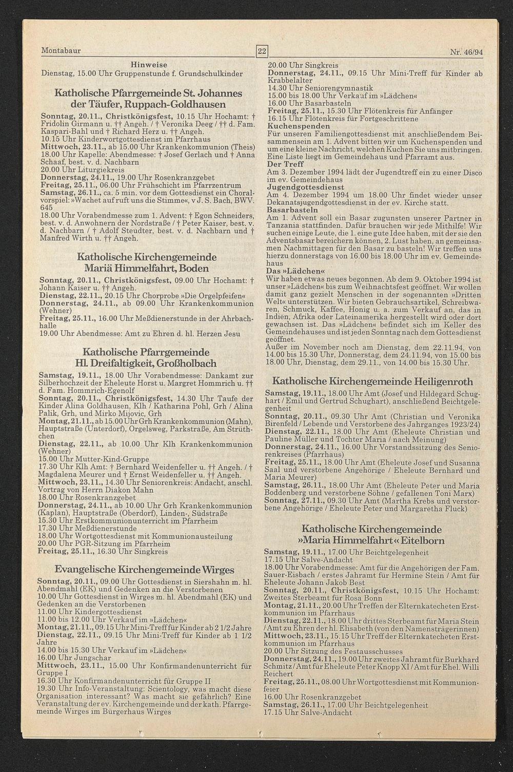 Am 4. Dezember 1994 um 18.00 Uhr findet wieder unser Dekanatsjugendgottesdienst in der ev. Kirche statt. Basarbasteln