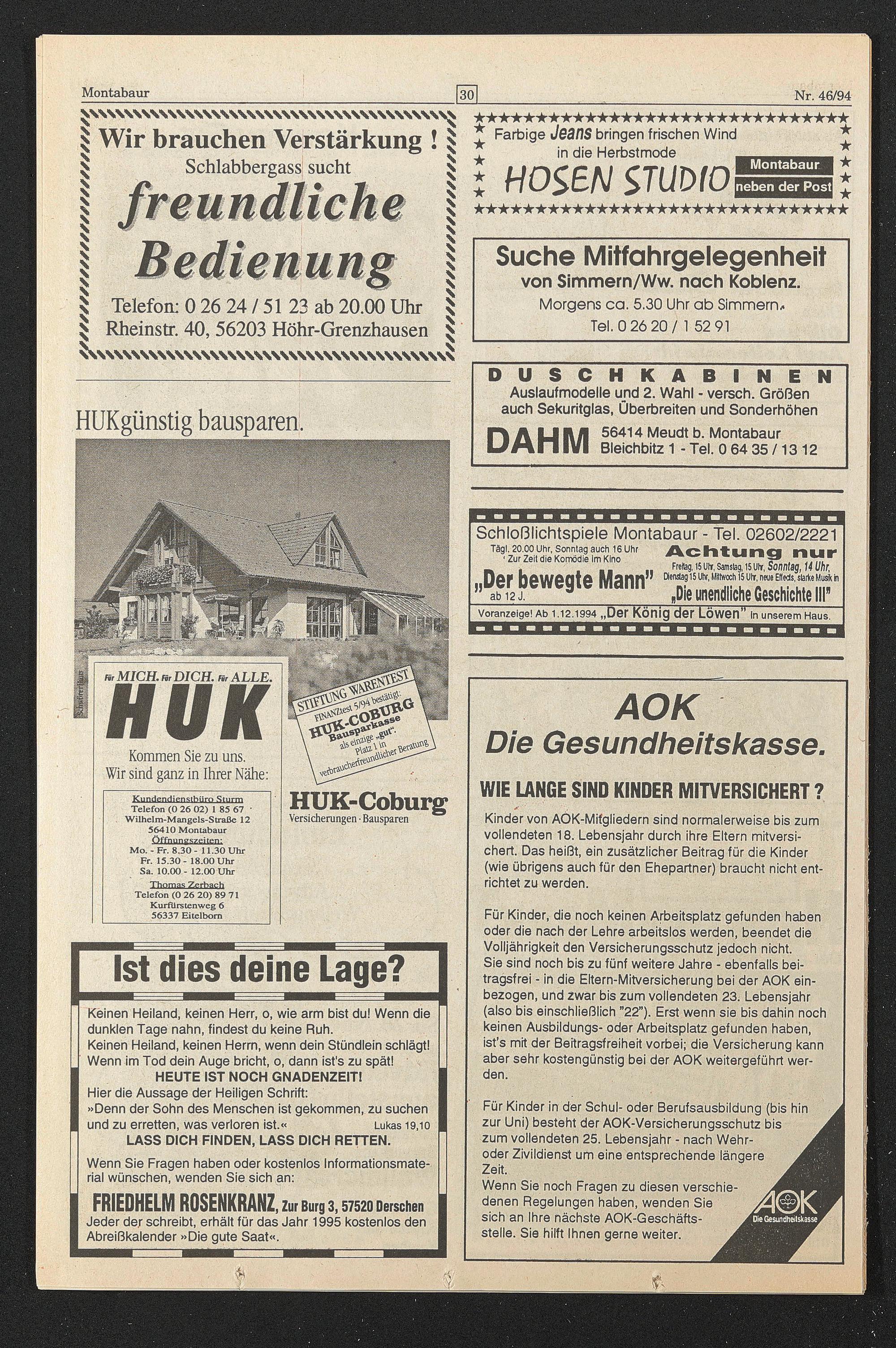 Voranzeige! Ab 1.12.1994 „Der König der Löwen” In unserem Haus.