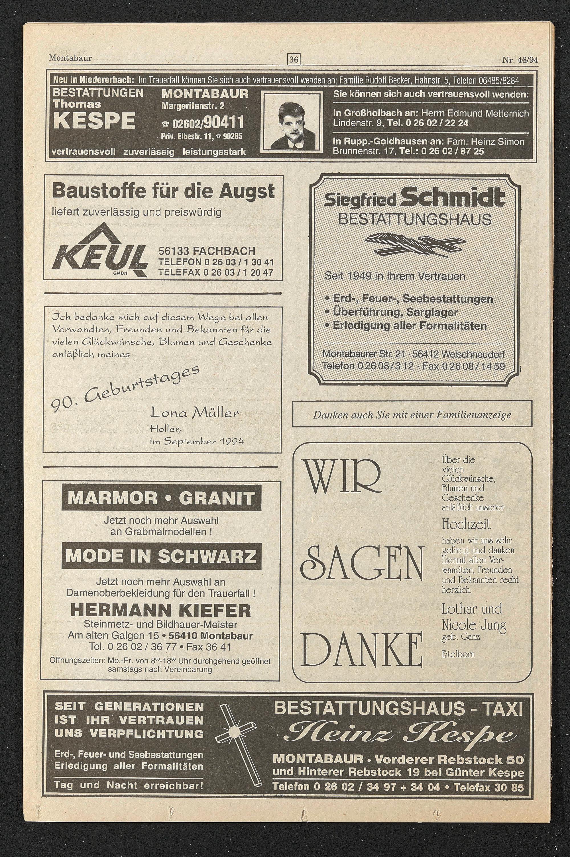 | Neu in Niedererbach: Im Trauerfall können Sie sich auch vertrauensvoll wenden an: Familie Rudolf Becker, Hahnstr. 5, Telefon 06485/8284 |
