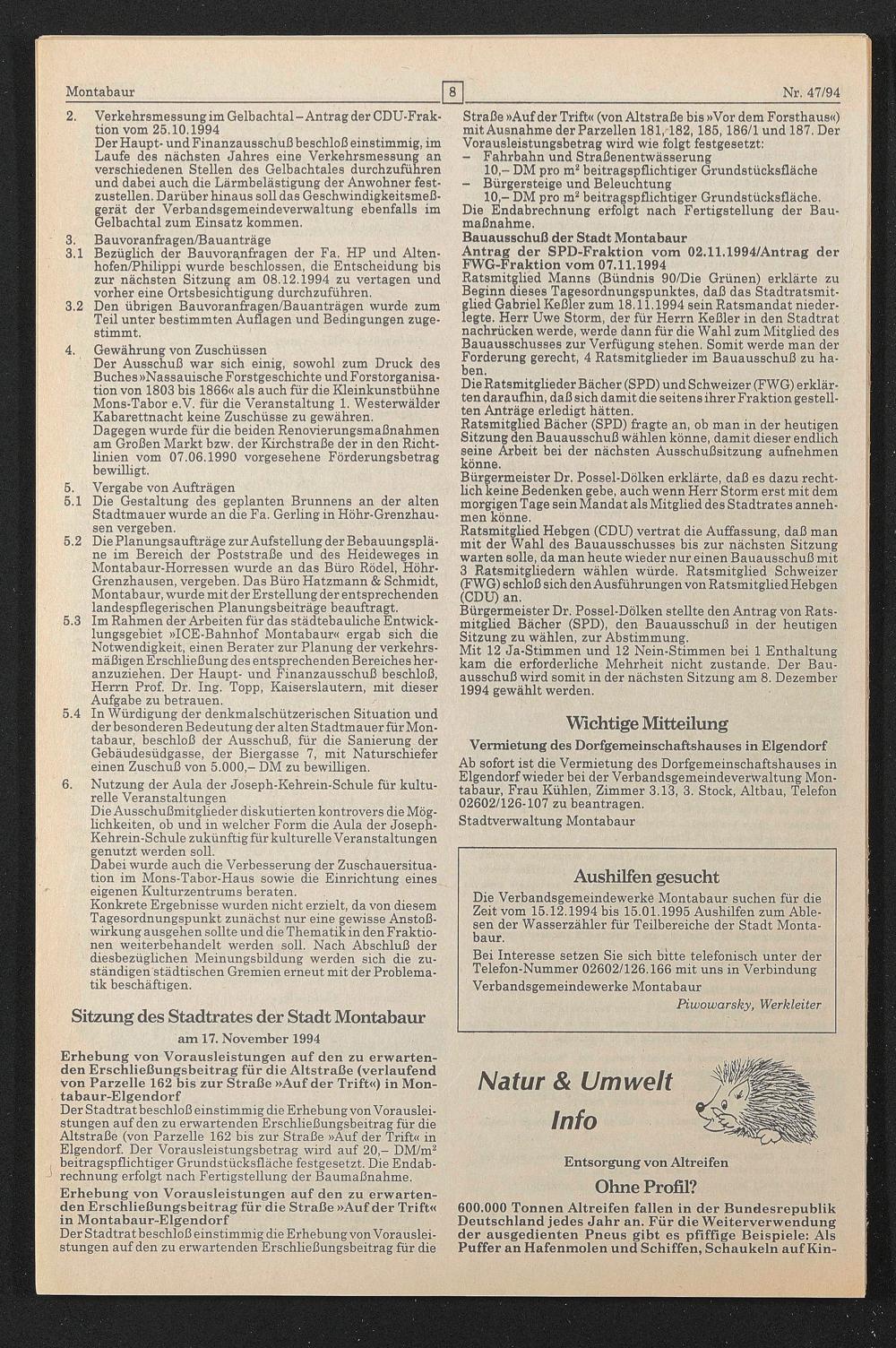 2. Verkehrsmessung im Gelbachtal - Antrag der CDU-Frak- tion vom 25.10.1994
