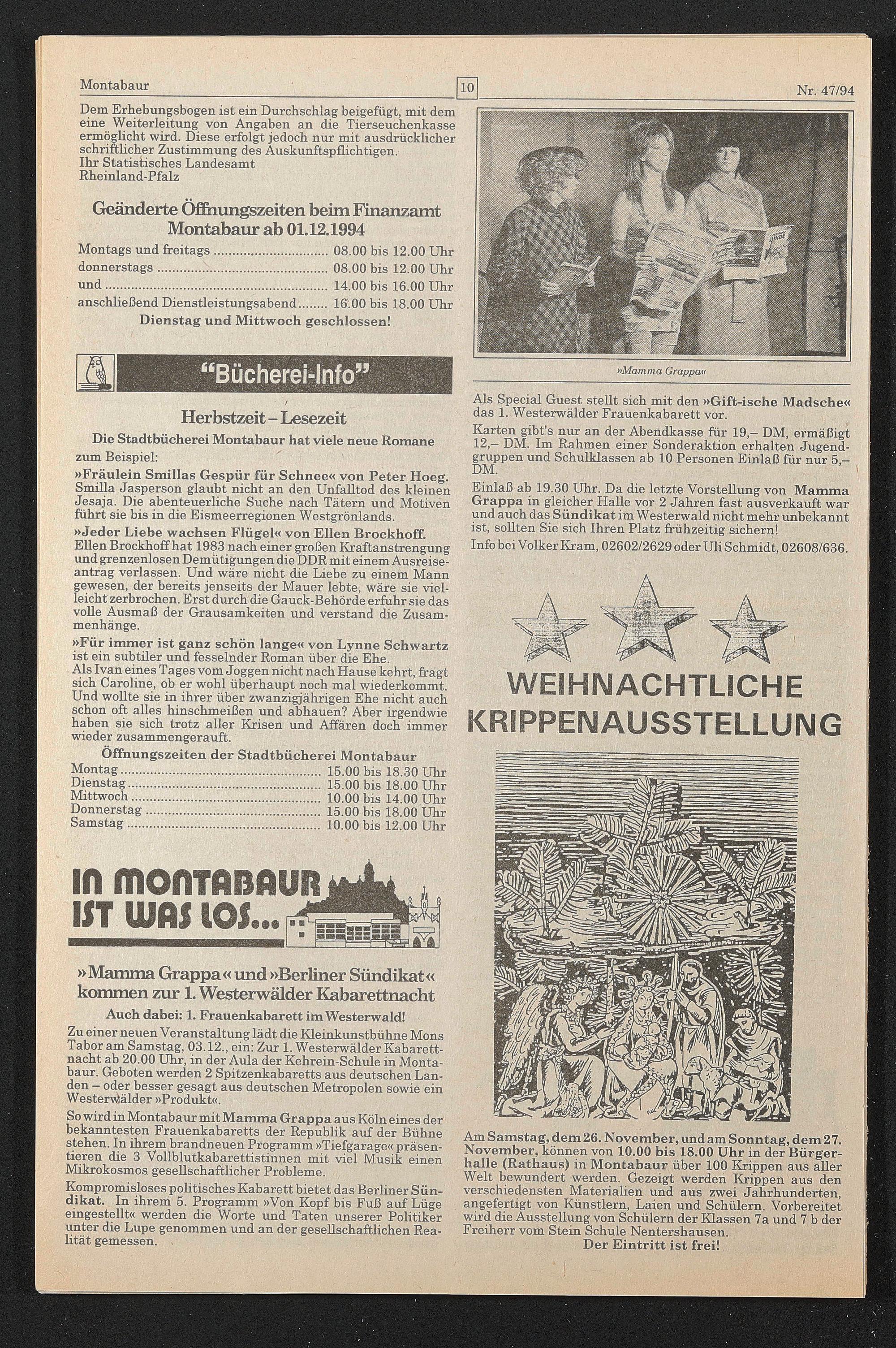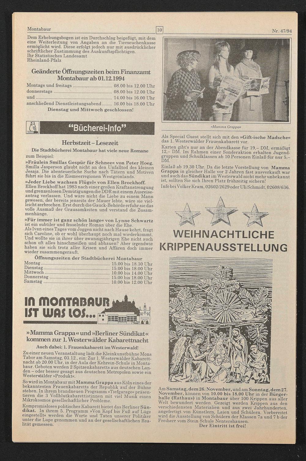 Geänderte Öflhungszeiten beim Finanzamt Montabaur ab 01.12.1994
