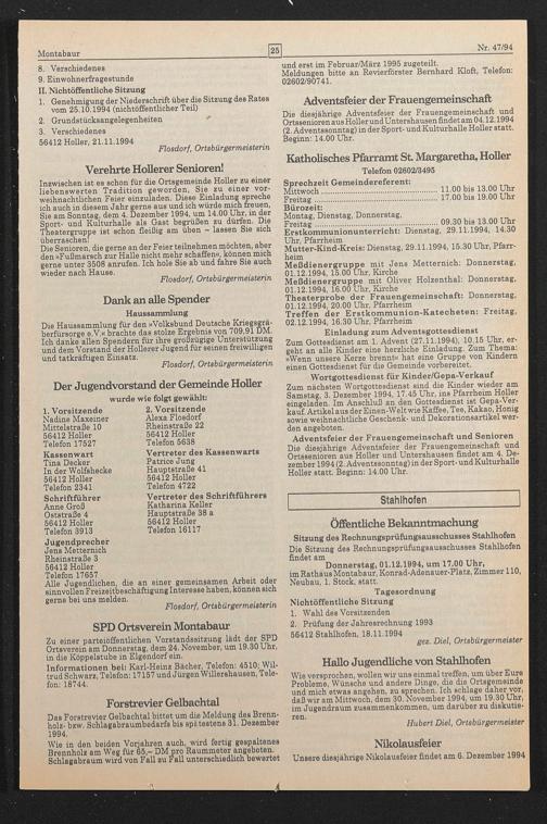 3. Verschiedenes 66412 Holler, 21.11.1994