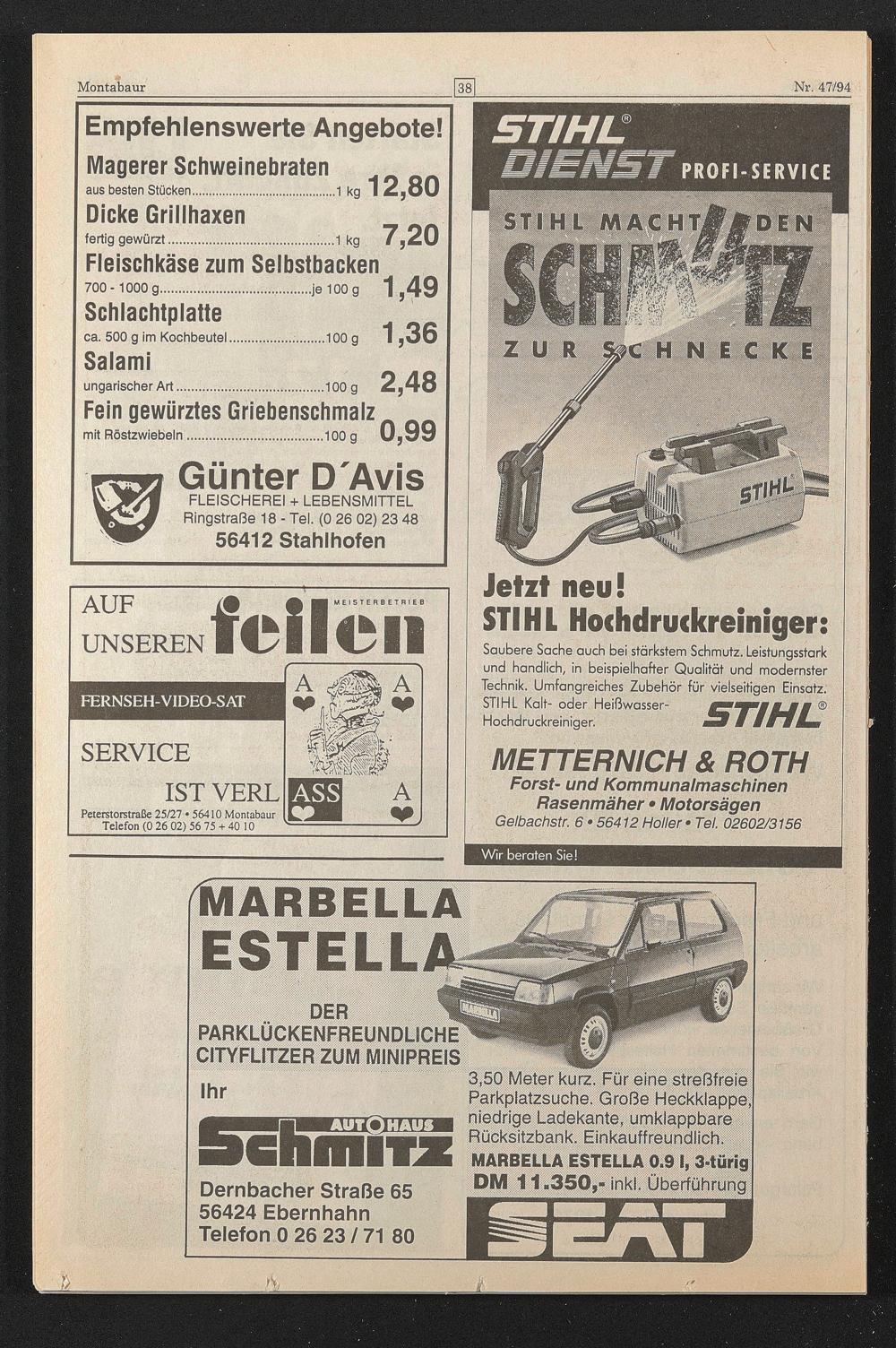 FLEISCHEREI + LEBENSMITTEL Ringstraße 18 - Tel. (0 26 02) 23 48