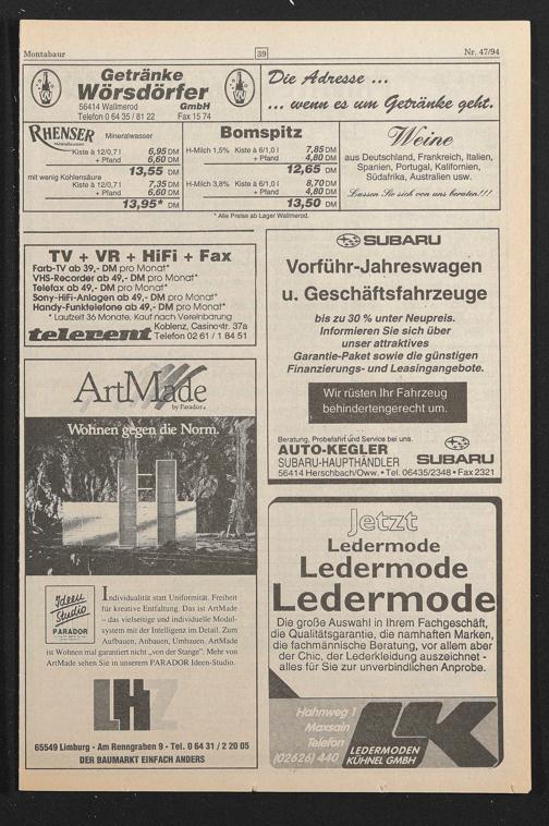 Telefax ab 49,- DM pro Monat* Sony-HiFi-Anlagen ab 49,- DM pro Monat* Handy-Funktelefone ab 49,- DM pro Monat*