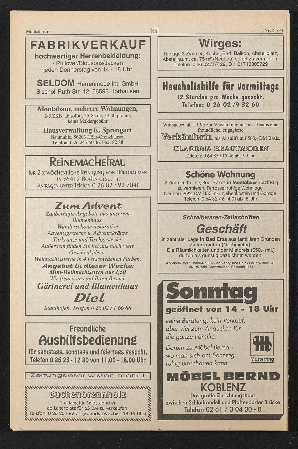 Darum zu Möbel Bernd - wo man sich am Sonntag ruhig umschauen kann.