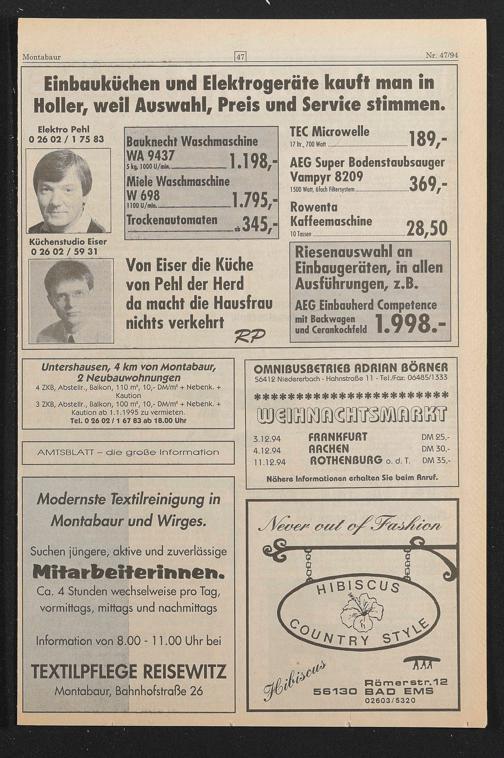 Modernste Textilreinigung in Montahauriund Wirges .