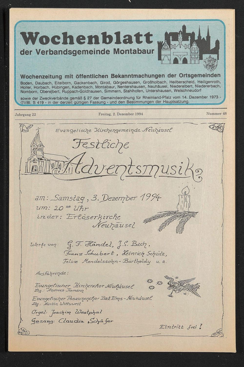 Wochenzeitung mit öffentlichen Bekanntmachungen der Ortsgemeinden