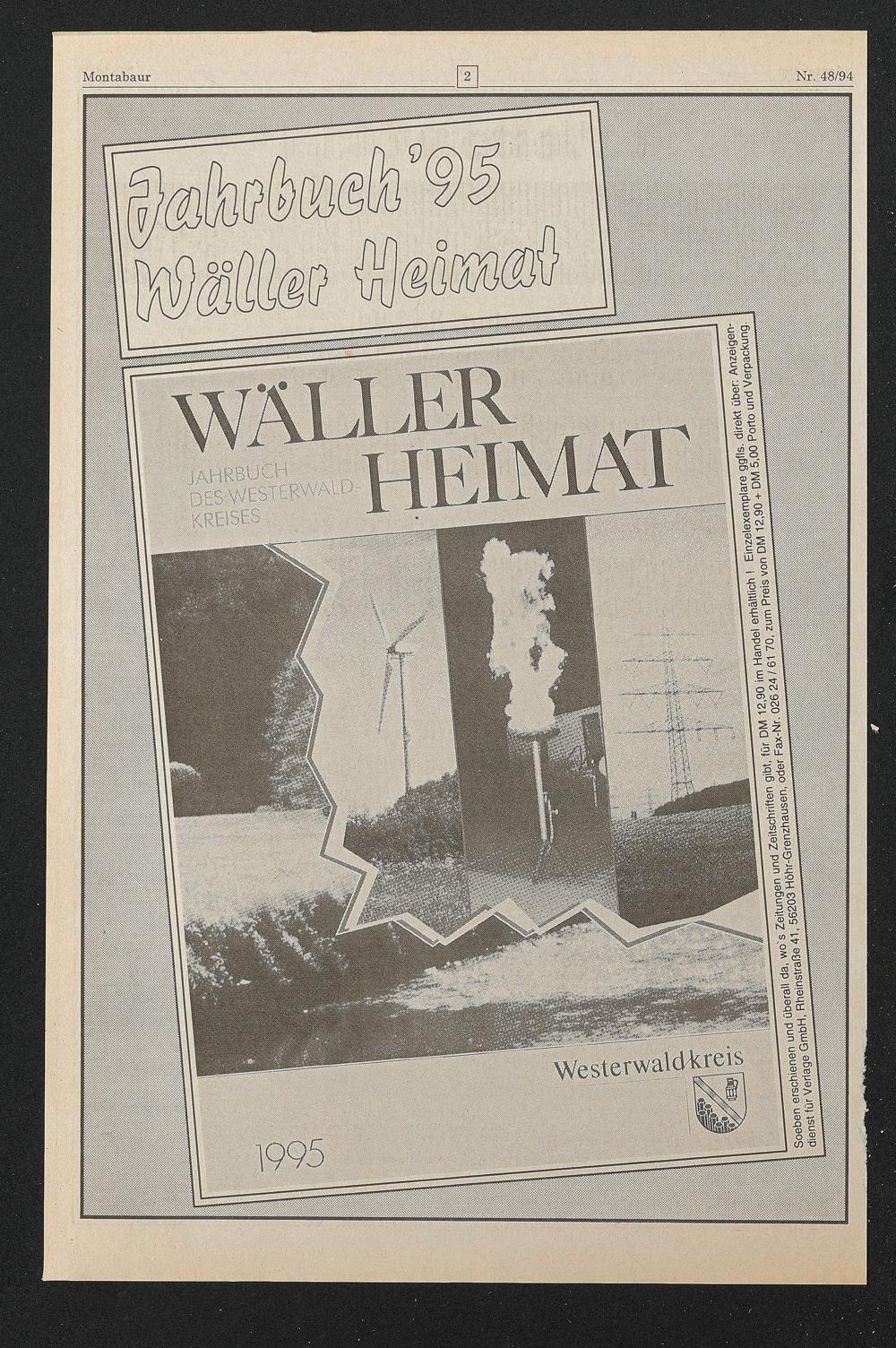 Nr. 48/94 Montabaur S P- iiligMiÄi ■KREISES. S5i ■=.« IHM ■q o OT <o ■s 03 3 n I mm Westerwaldtaeis O 0) CO -O nms