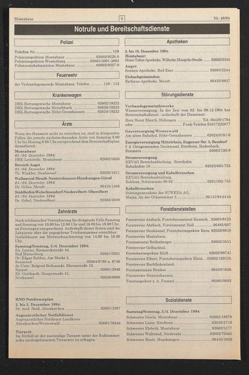 der Verbandsgemeinde Montabaur, Telefon.110 - 112