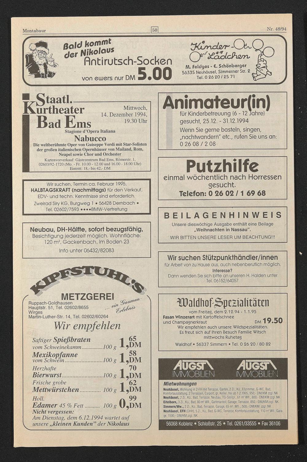 Neuhäusel, Wohnung in 2-FH mit Terrasse, Garten, 2 Zi., Kü., Eßzimmer, G-WC, Bad, Komfortausstattung, 2 Terrassen, Carport, gr, Keller, frei ab 1.2.1995,950,- DM/KM zzgl. NK Neuhäusel, 2 Zi., Kü., Bad, Terrasse, Neubau, TG-Stellpl.,-61 m* WIE, 800,- DM/KM zzgl. NK Eitelborn, 3 Zi., Kü., Bad, 80 m 2 Wfl., Gartenanteil, Garage, Terrasse, 850,- DM/KM zzgl, NK. Simmern/Ww., 2 Zi., Kü., Bad, Terrasse, Garage, 65 m 2 .WII., 500,- DM/KM zzgl. NK Neuhäusel, EFH (DHH), 5 Zi., Kü., Bad, G-WC, Terrasse, Komfortaüsstattung, 110 m 2 Wfl., Garage, 1500,-DM/KM zzgl. NK.