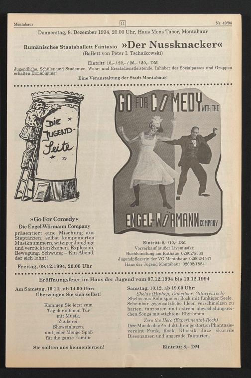 Eintritt: 8,-/10,- DM Vorverkauf (außer Livemüsik): Buchhandlung am Rathaus 02602/5333 Jugendpflegerin der VG Montabaur 02602/4547 Haus der Jugend Montabaur 02602/1884