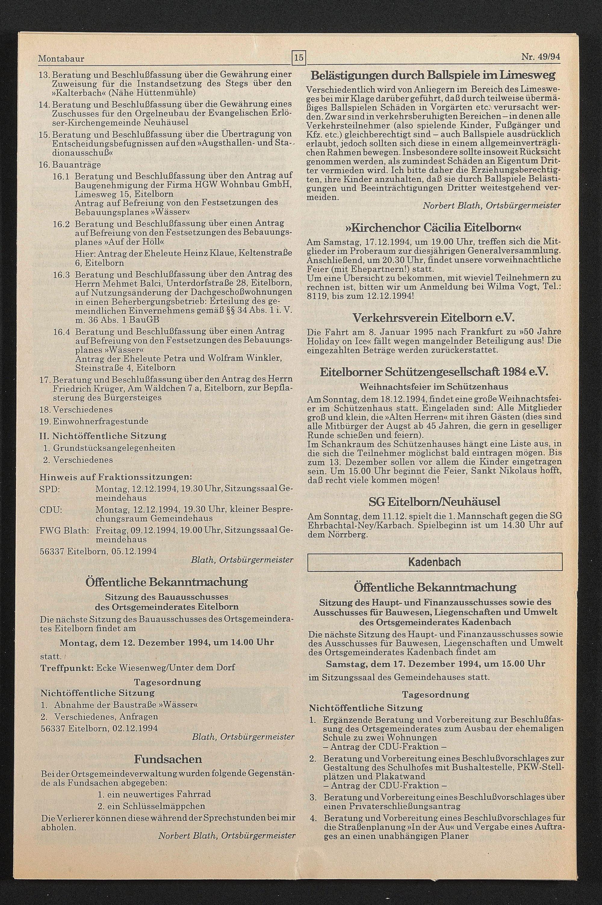 2. Verschiedenes, Anfragen 56337 Eitelborn, 02.12.1994