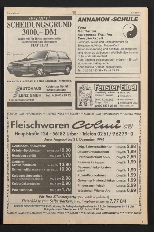 Unser Angebot bis 31. Dezember 1994