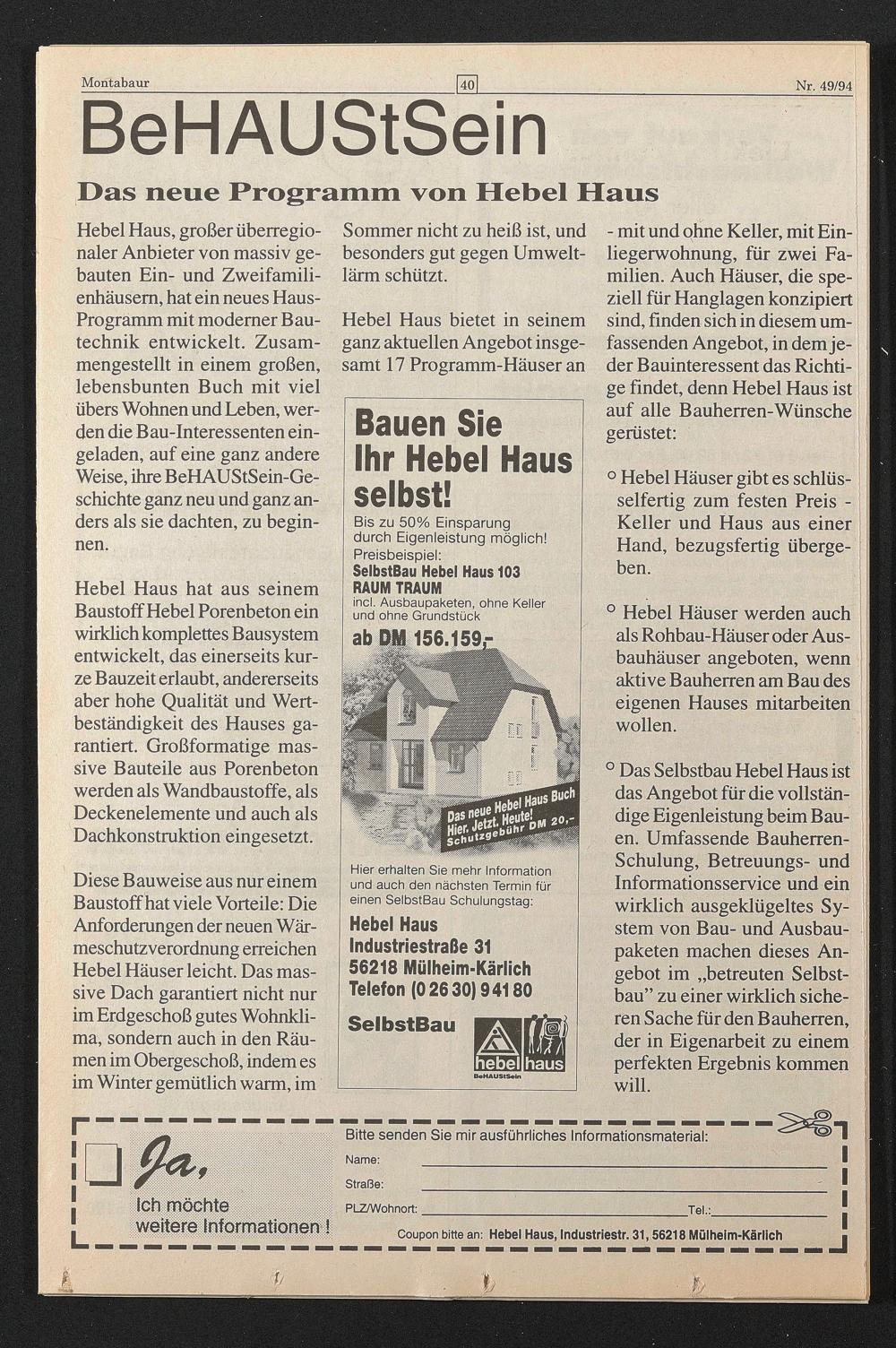 Coupon bitte an: Hebel Haus, Industriestr. 31,56218 Mülheim-Kärlich