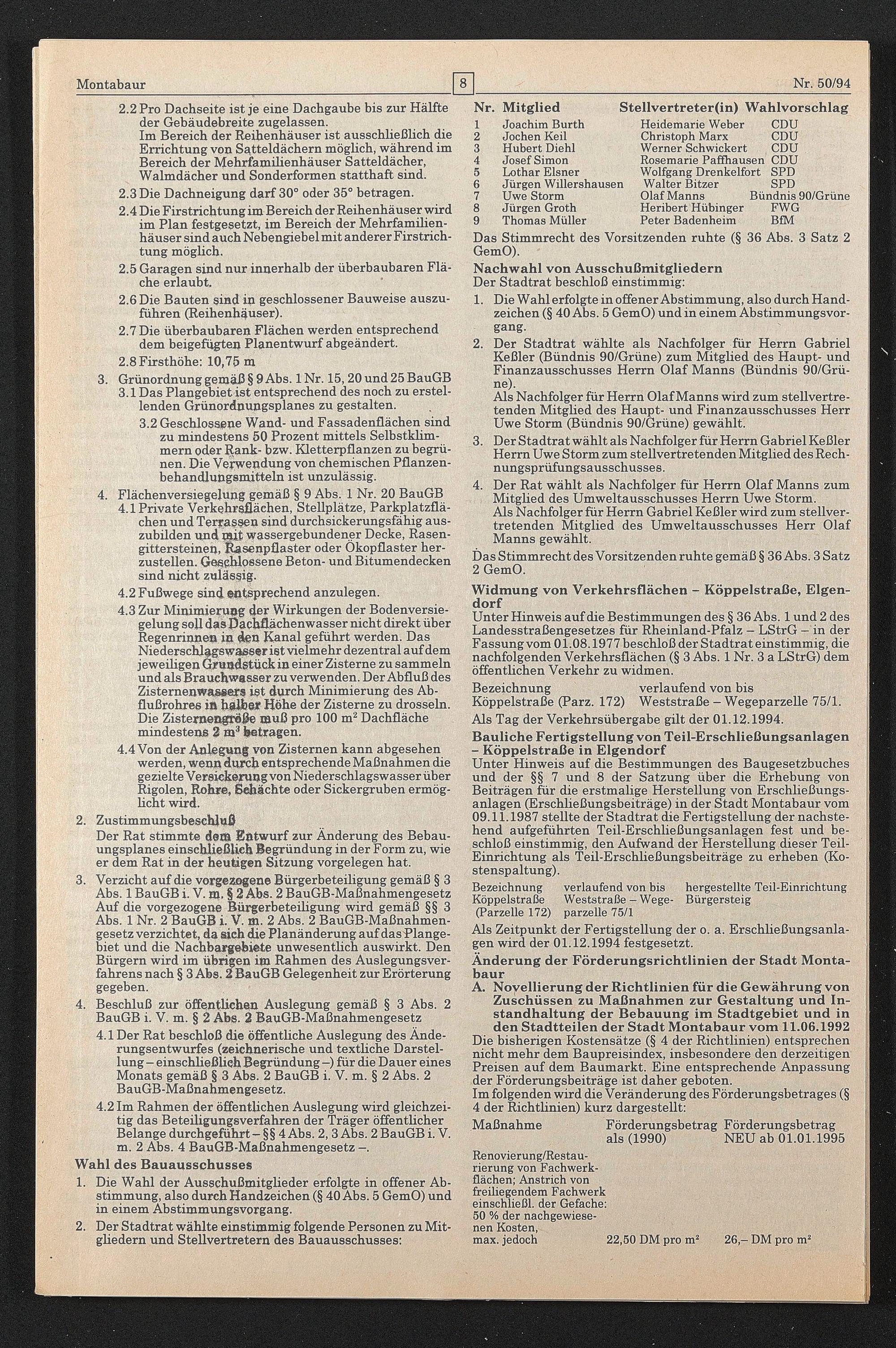 Unter Hinweis auf die Bestimmungen des Baugesetzbuches und der §§ 7 und 8 der Satzung über die Erhebung von Beiträgen für die erstmalige Herstellung von Erschließungsanlagen (Erschließungsbeiträge) in der Stadt Montabaur vom 09.11.1987 stellte der Stadtrat die Fertigstellung der nachstehend aufgeführten Teil-Erschließungsanlagen fest und beschloß einstimmig, den Aufwand der Herstellung dieser Teil- Einrichtung als Teil-Erschließungsbeiträge zu erheben (Kostenspaltung).