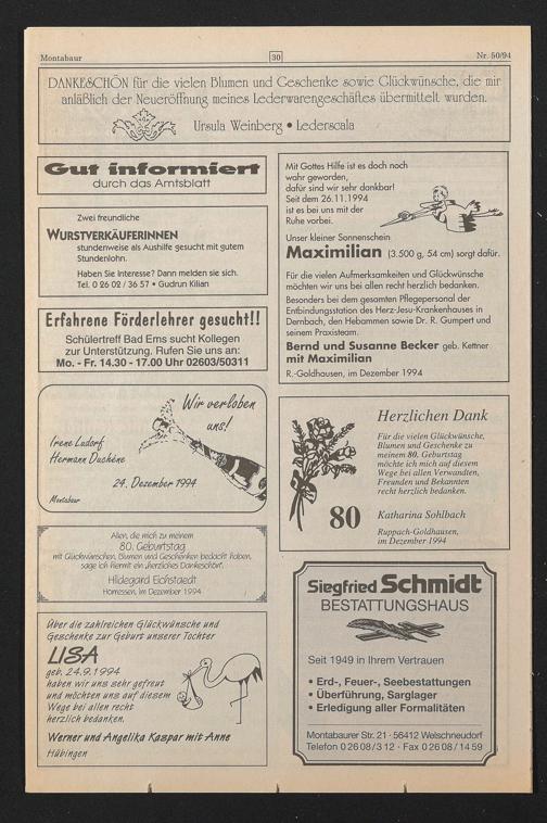 geh, 24.9,1994 haken wir uns sehr gefreut und möchten uns auf diesem Wege kei allen recht herzlich kedanken,