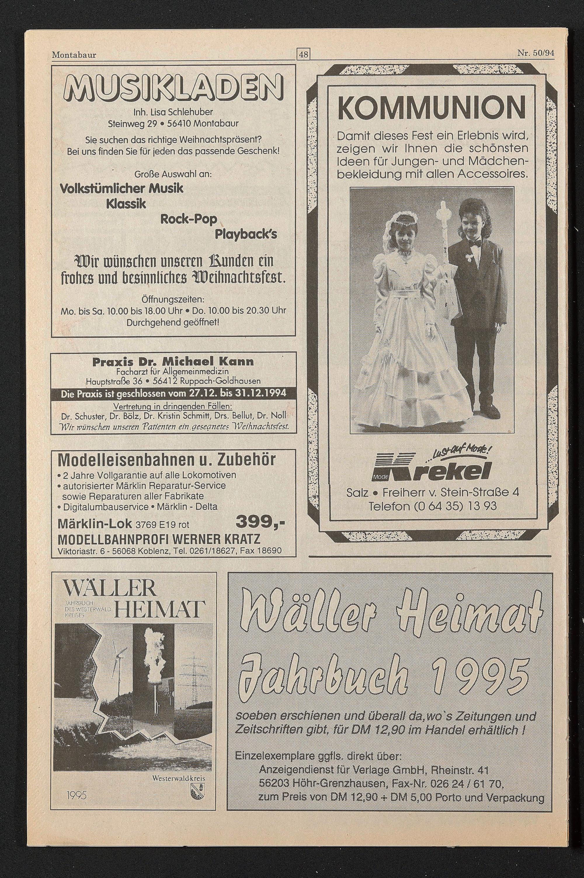 Die Praxis ist geschlossen vom 27.12. bis 31.12.1994