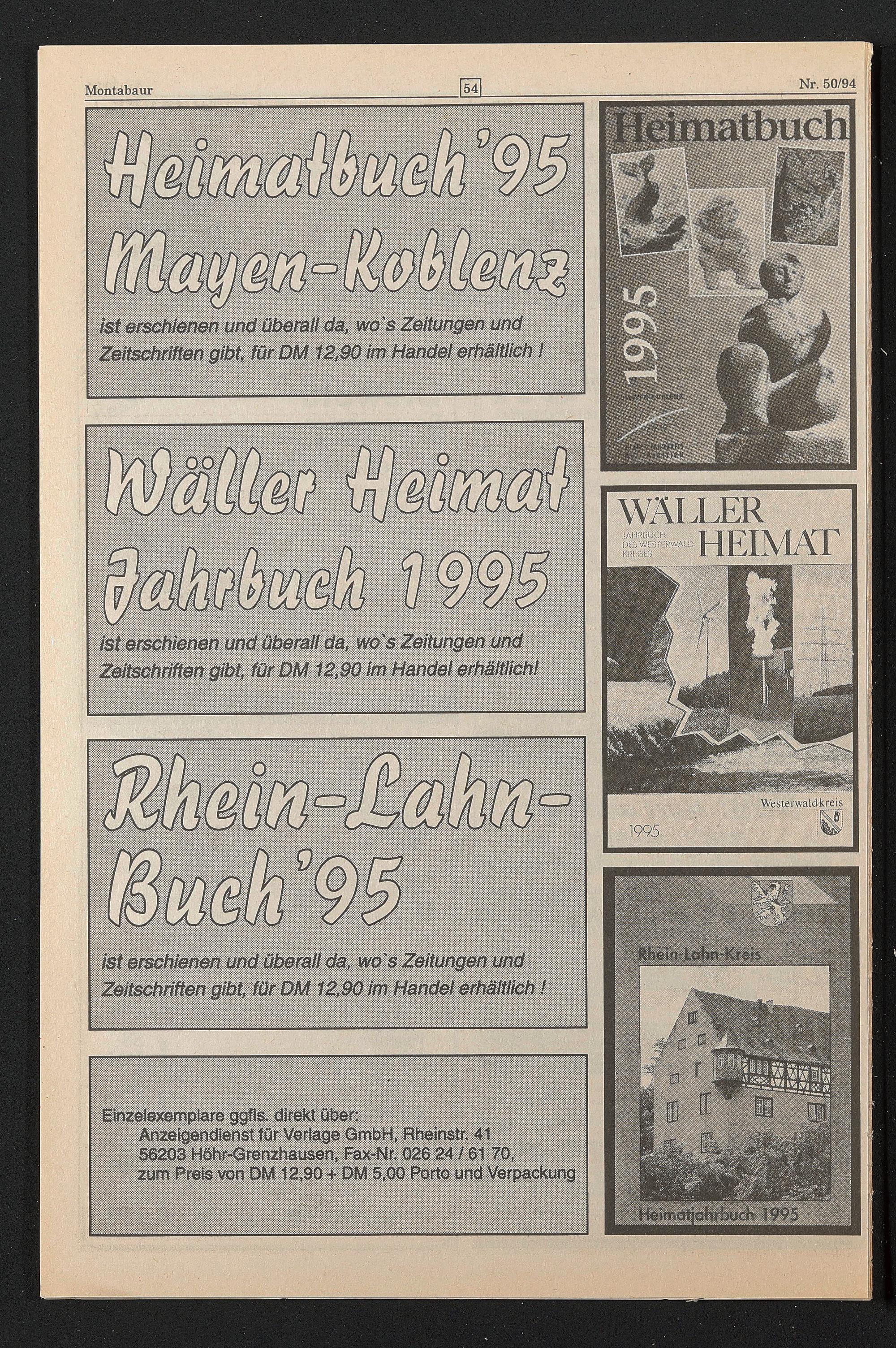 zum Preis von DM 12,90 + DM 5,00 Porto und Verpackung