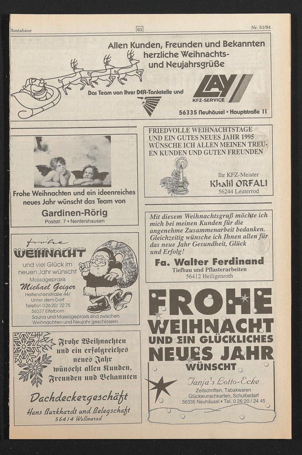 FRIEDVOLLE WEIHNACHTSTAGE UND EIN GUTES NEUES JAHR 1995 WÜNSCHE ICH ALLEN MEINEN TREUEN KUNDEN UND GUTEN FREUNDEN