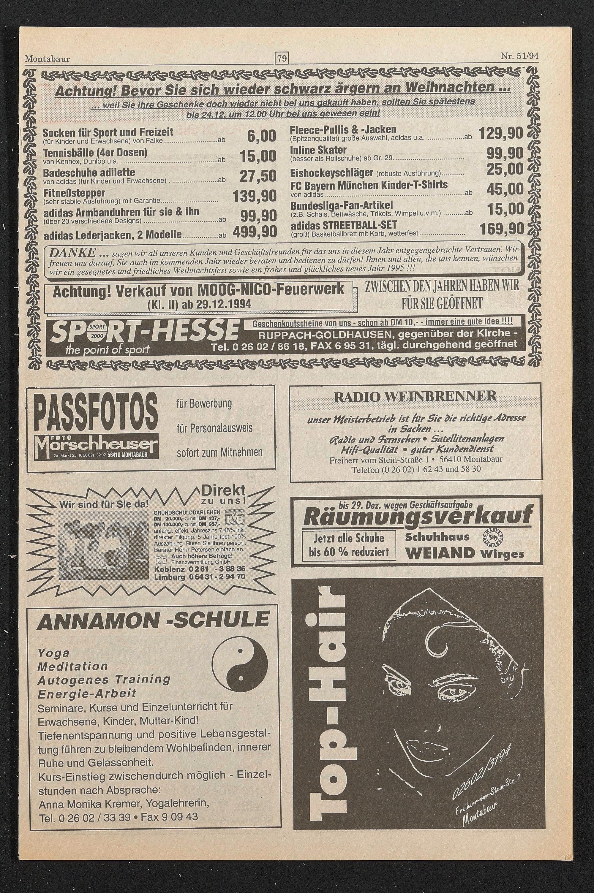 fhe point of sport Tel. 0 26 02 / 86 18, FAX 6 95 31, tägl. durchgehend geöffnet