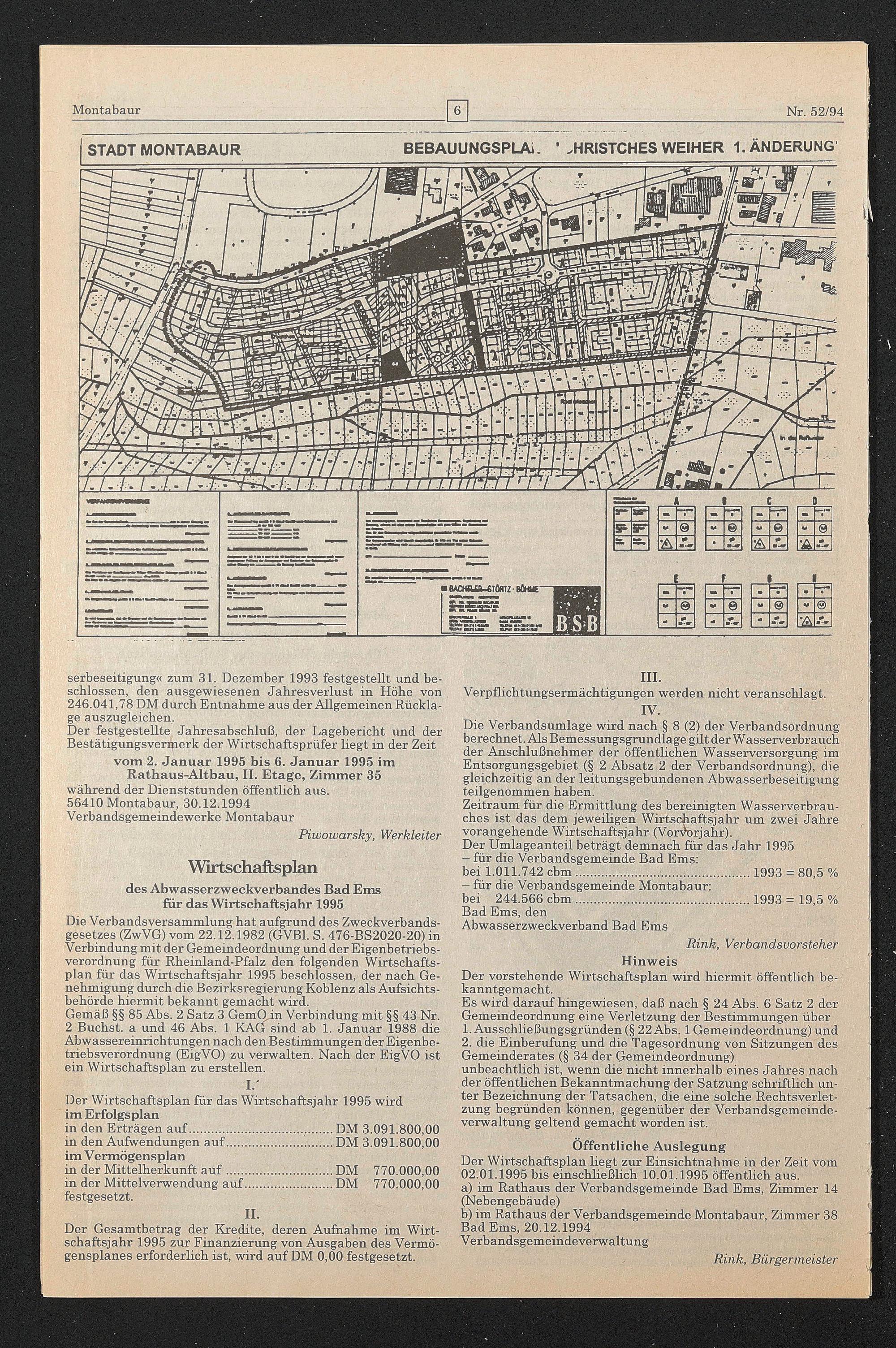56410 Montabaur, 30.12.1994 Verbandsgemeindewerke Montabaur