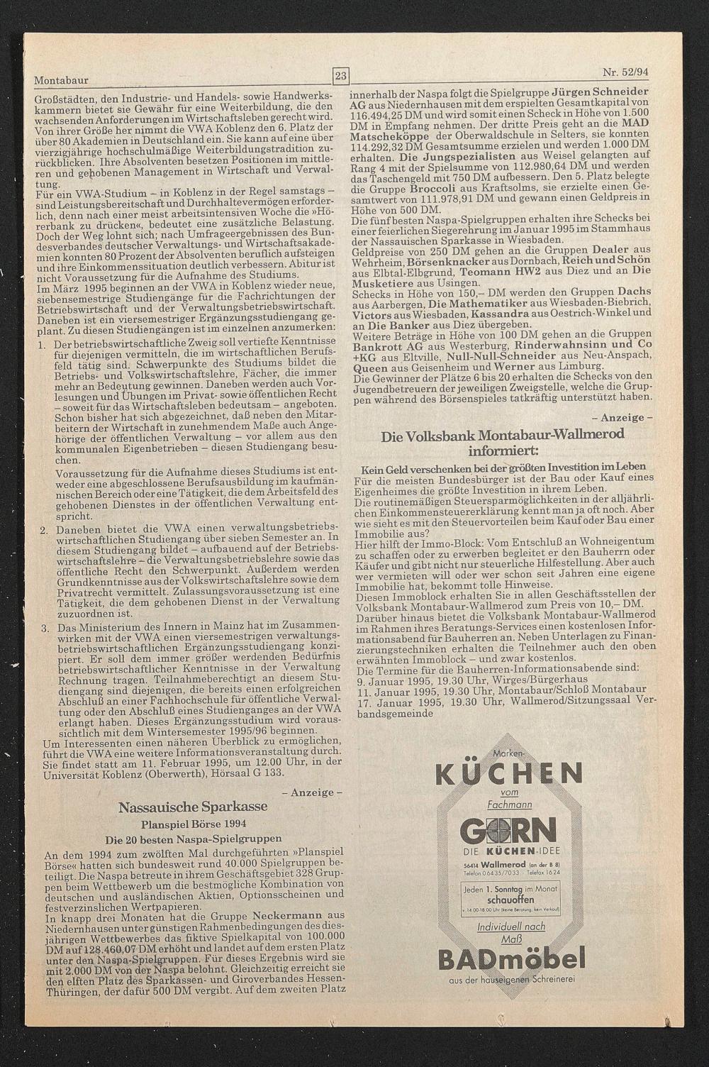 Planspiel Börse 1994 Die 20 besten Naspa-Spielgruppen