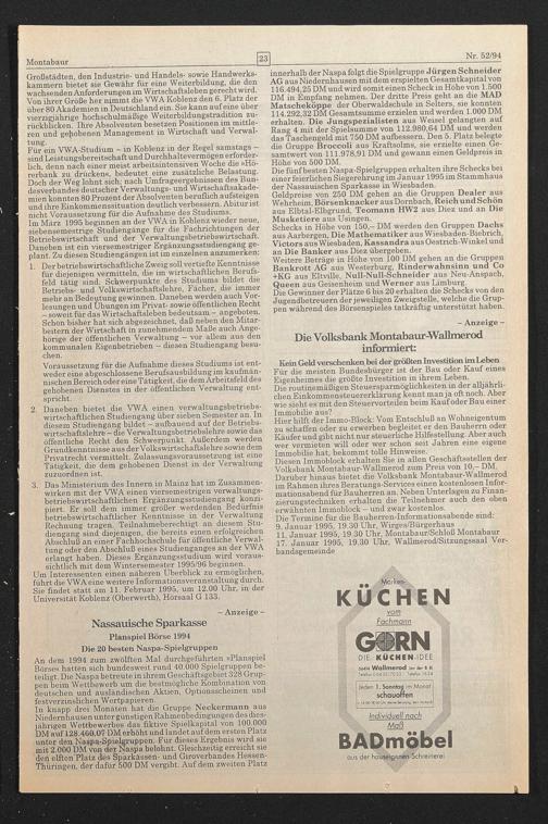 Diesen Immoblock erhalten Sie in allen Geschäftsstellen der Volksbank Montabaur-Wallmerod zum Preis von 10,— DM. Darüber hinaus bietet die Volksbank Montabaur-Wallmerod im Rahmen ihres Beratungs-Services einen kostenlosen Informationsabend für Bauherren an. Neben Unterlagen zu Finanzierungstechniken erhalten die Teilnehmer auch den oben erwähnten Immoblock - und zwar kostenlos.