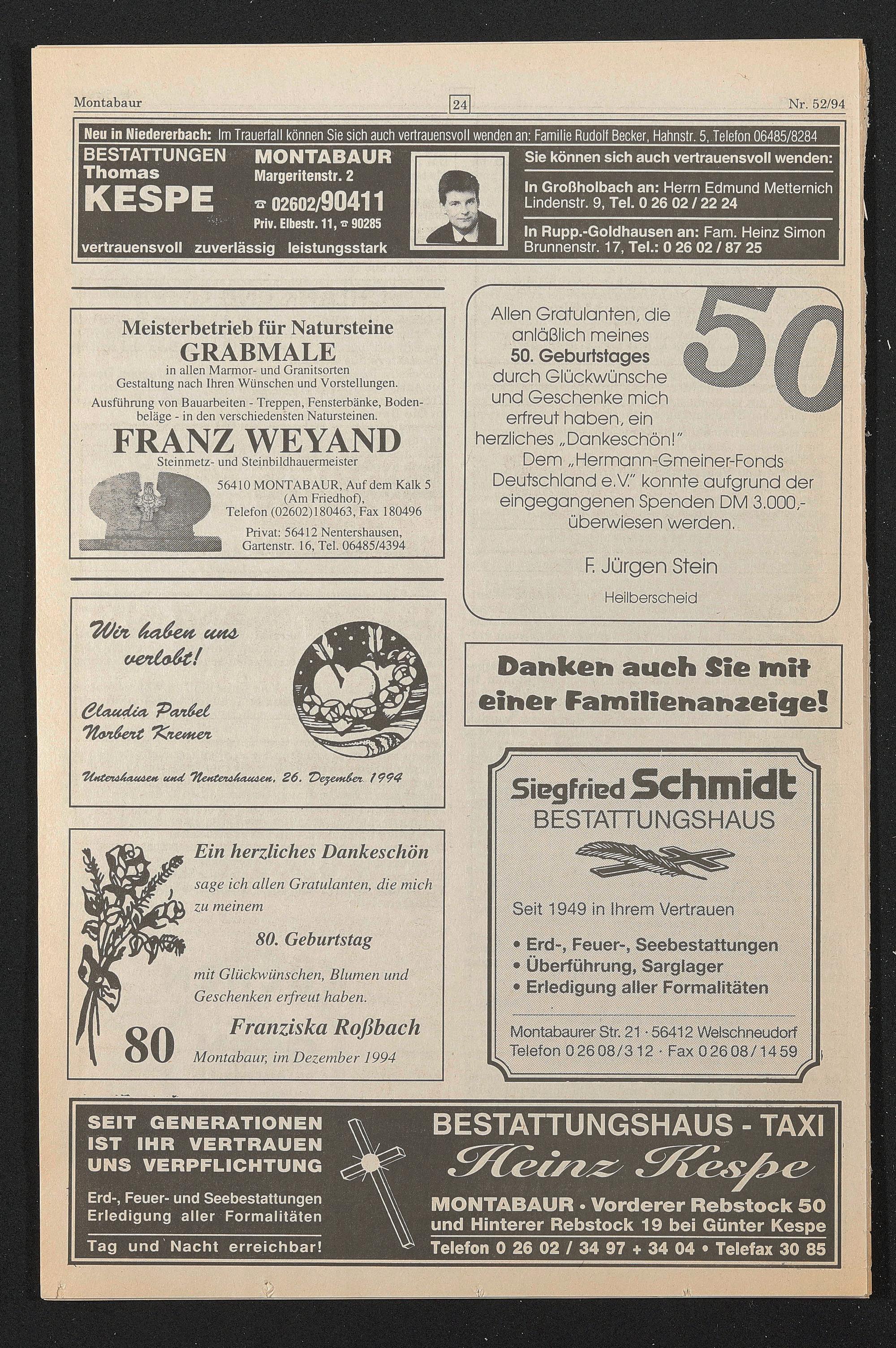 Allen Gratulanten, die anläßlich meines 50. Geburtstages durch Glückwünsche und Geschenke mich erfreut haben, ein herzliches „Dankeschön!"