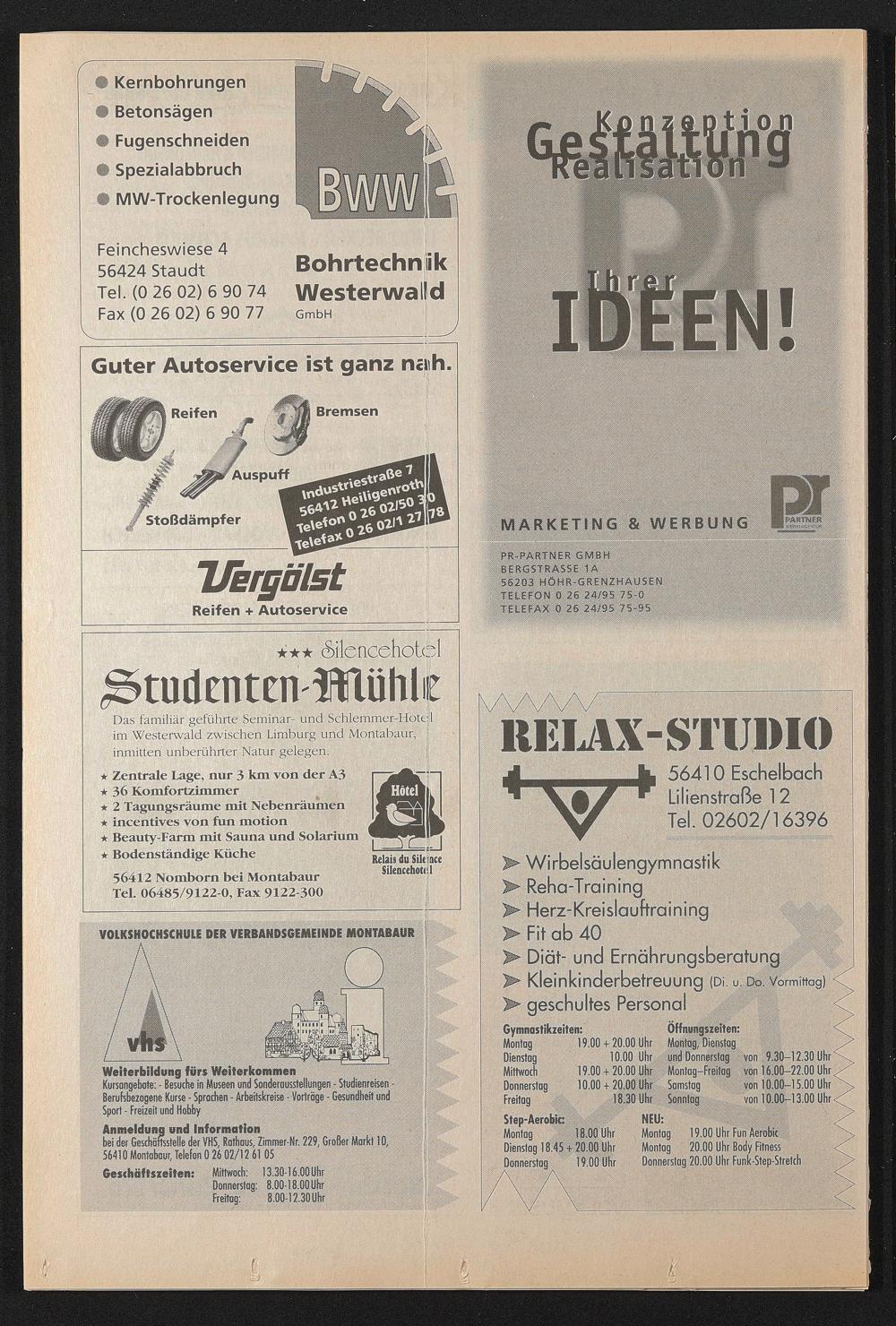 bei der Geschäftsstelle der VHS, Rathaus, Zimmer-Nr. 229, Großer Markt 10, 56410 Montabaur, Telefon 0 26 02/12 61 05