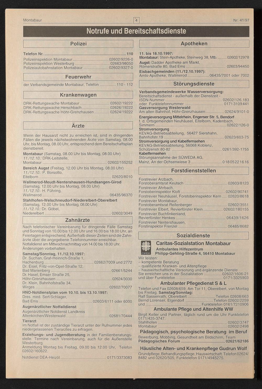 der Verbandsgemeinde Montabaur, Telefon.110-112