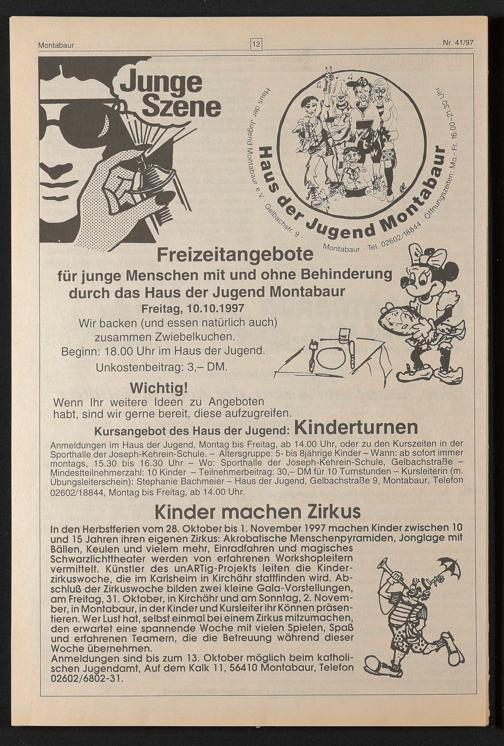 für junge Menschen mit und ohne Behinderung durch das Haus der Jugend Montabaur ^