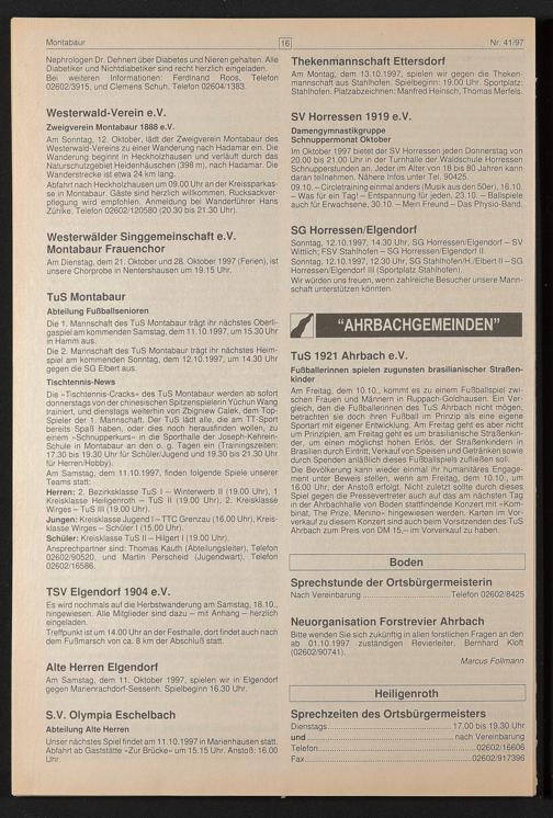 Am Samstag, dem 11. Oktober 1997, spielen wir in Eigendorf gegen Marienrachdorf-Sessenh. Spielbeginn 16.30 Uhr.